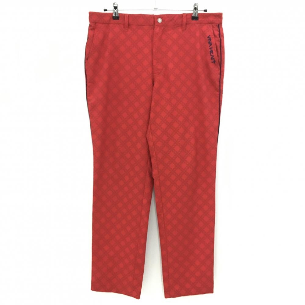 【超美品】ビバハート パンツ 黒×白×レッド チェック 薄手 メンズ 76 ゴルフウェア VIVA HEART