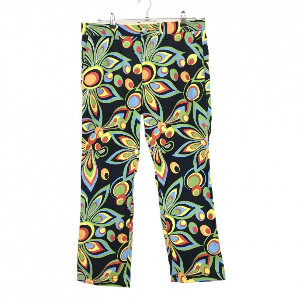パーリーゲイツ パンツ ネイビー×ライトグリーン パイナップル柄 ストレッチ レディース 1(M) ゴルフウェア PEARLY GATES