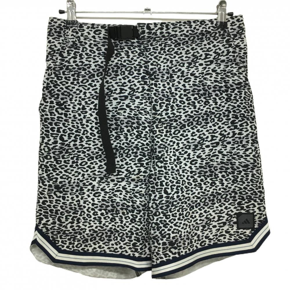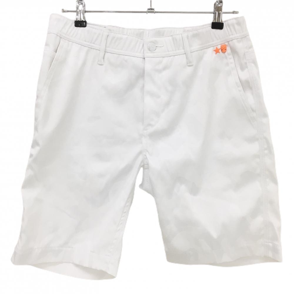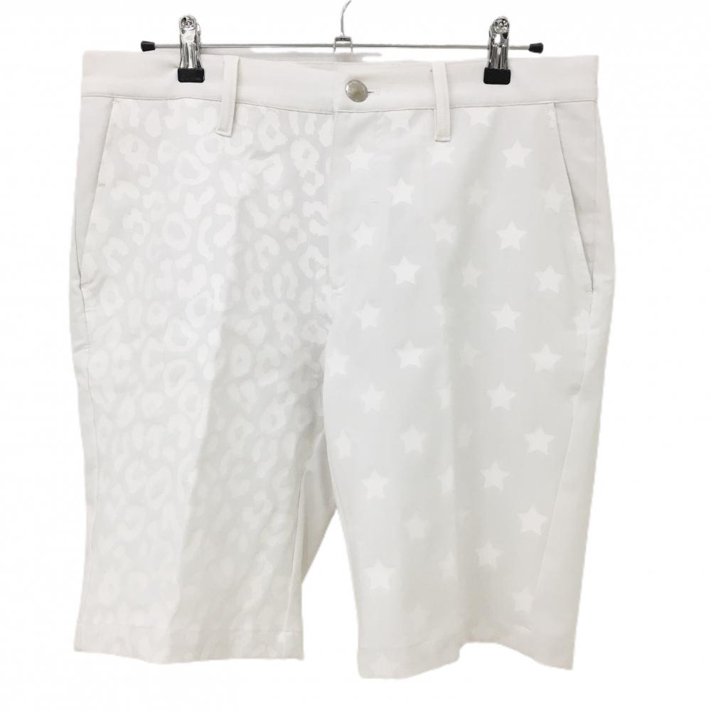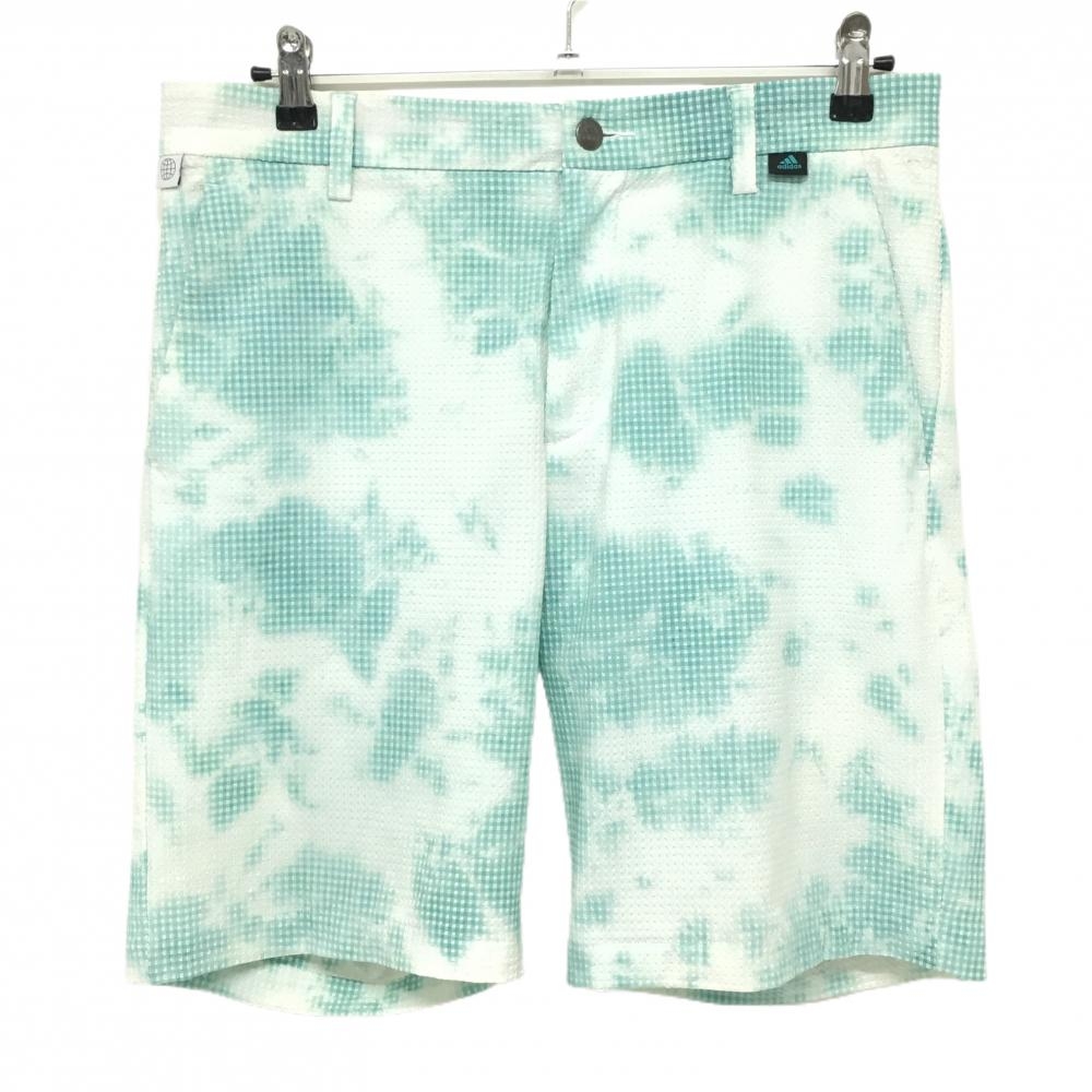 【美品】アディダス ハーフパンツ オフホワイト×ライトグレー モザイクカモフラ調柄 ストレッチ メンズ 88 ゴルフウェア adidas