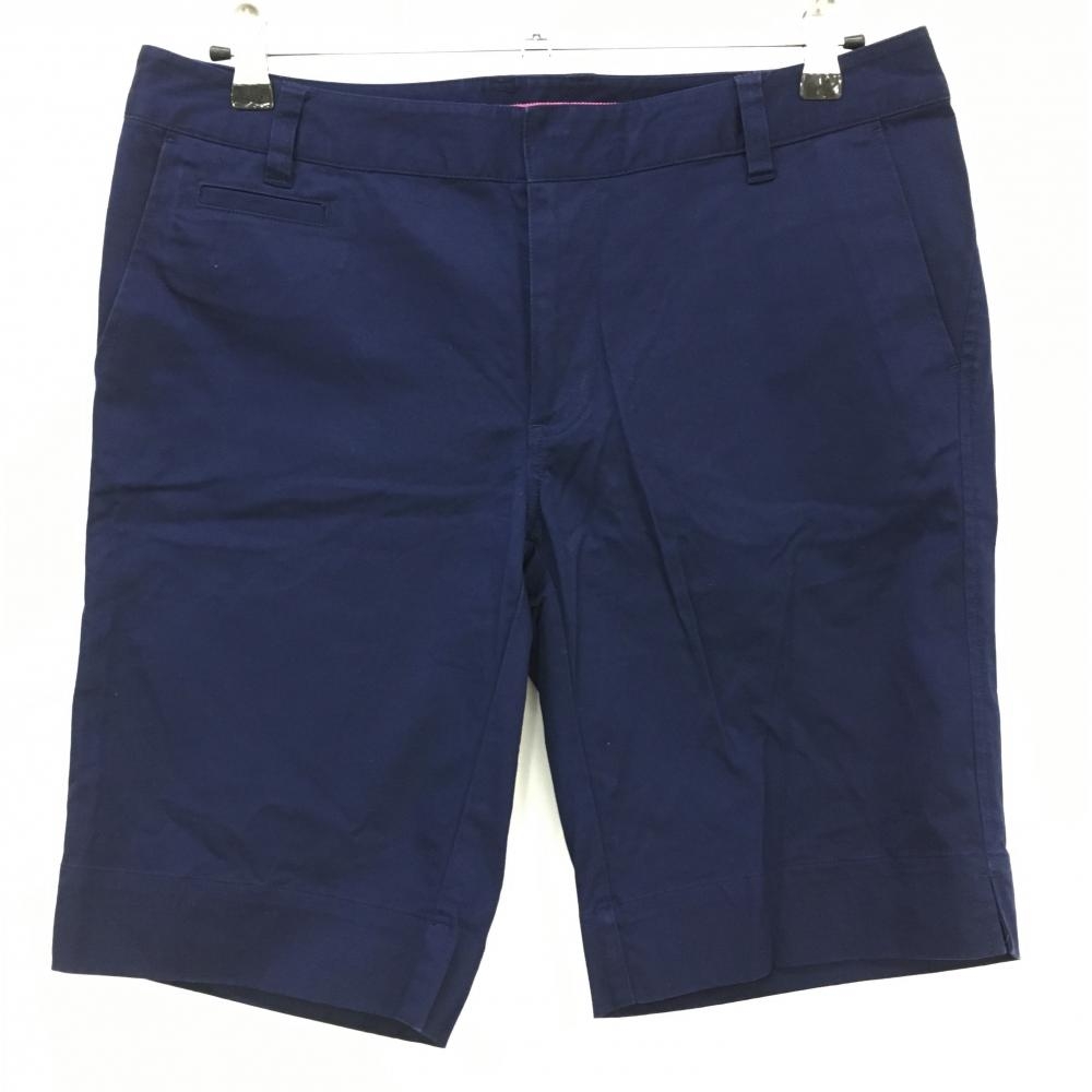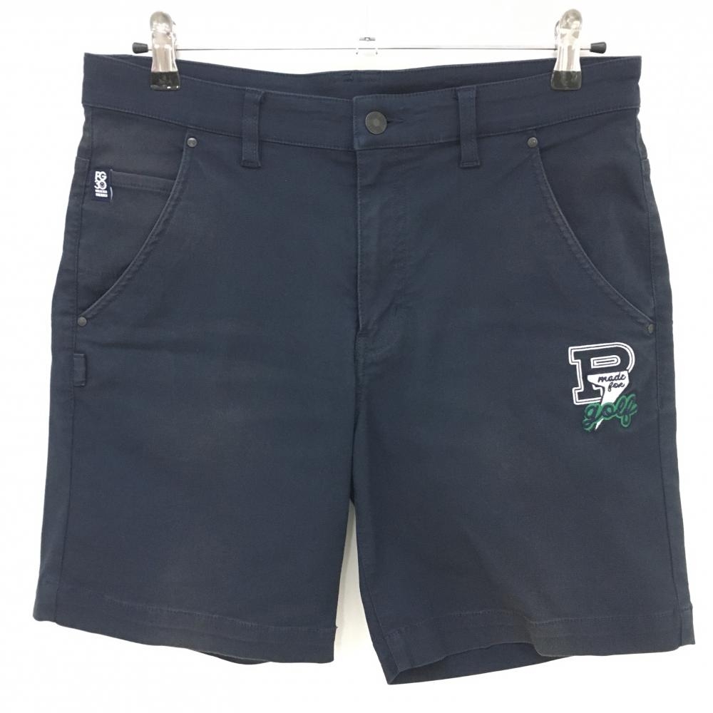 【美品】パーリーゲイツ ハーフパンツ ネイビー ロゴグリーン 無地 メンズ 6(XL) ゴルフウェア PEARLY GATES