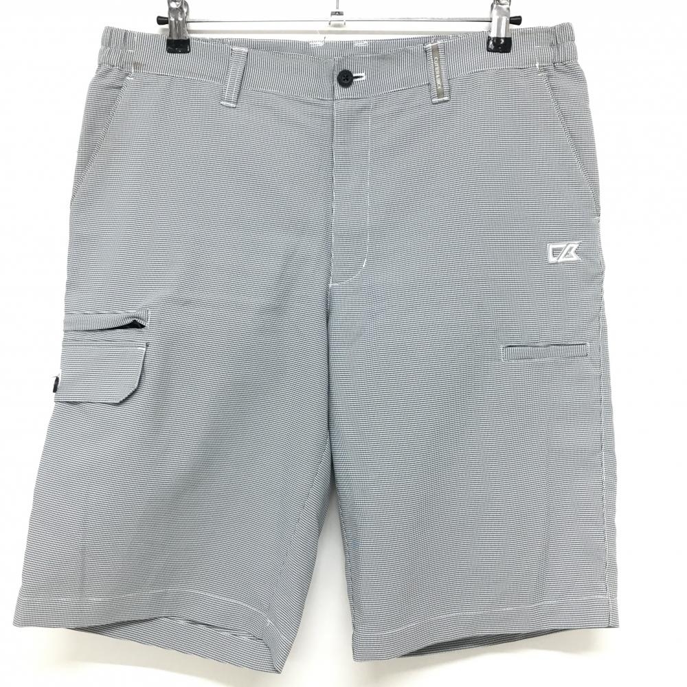 【美品】ツアーステージ ハーフパンツ グレー×黒 ステッチ 複数ポケット ストレッチ メンズ L ゴルフウェア TOURSTAGE