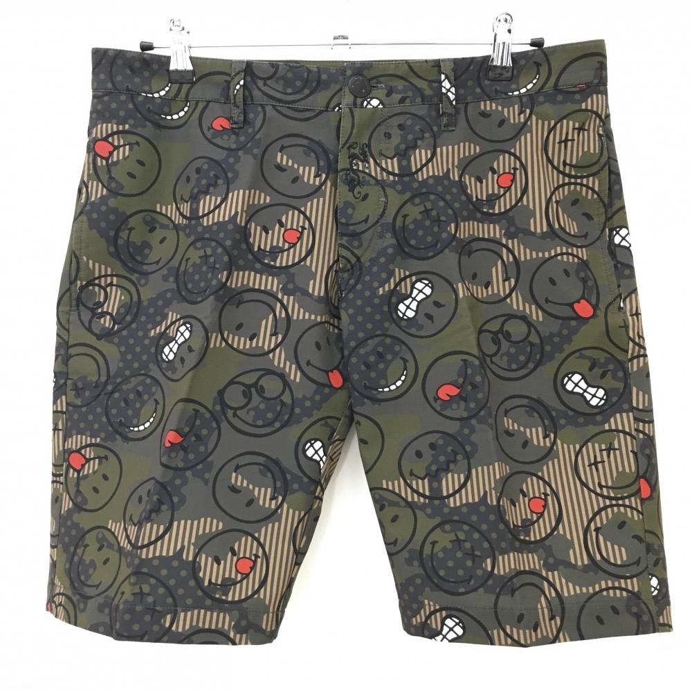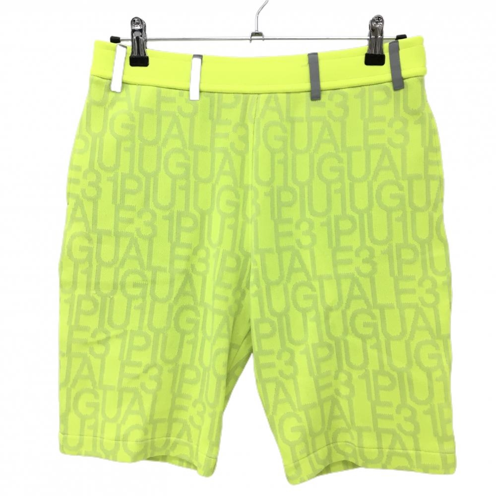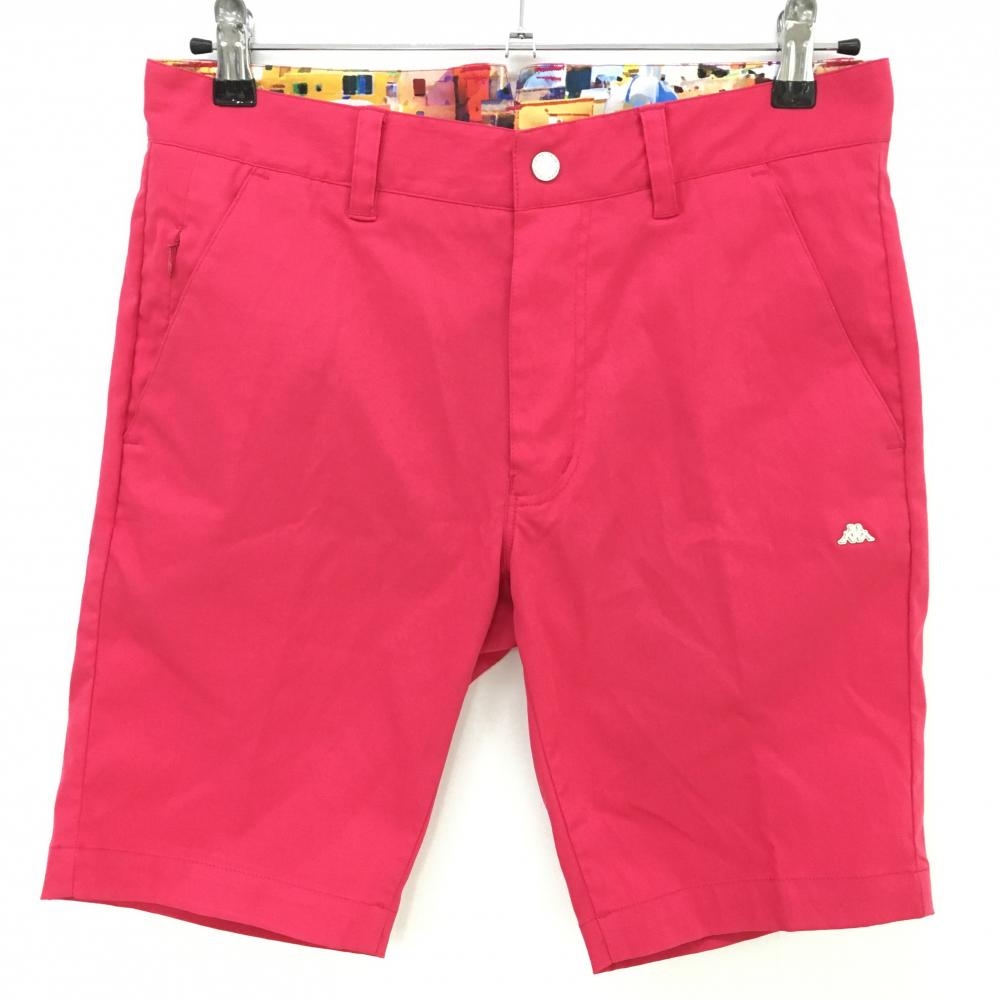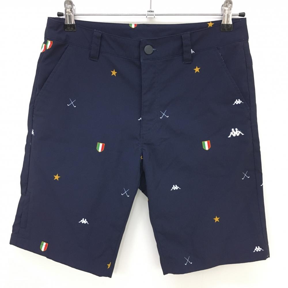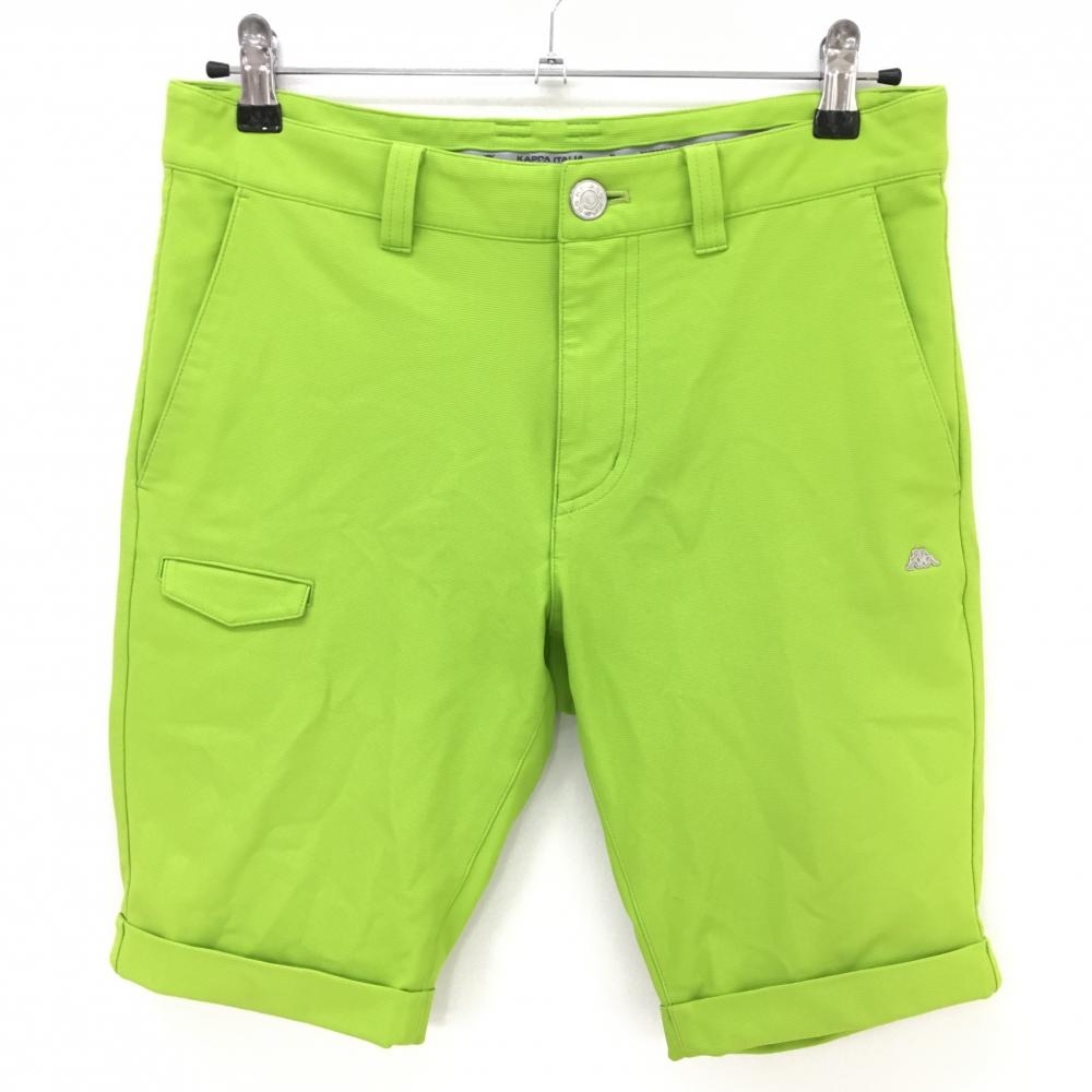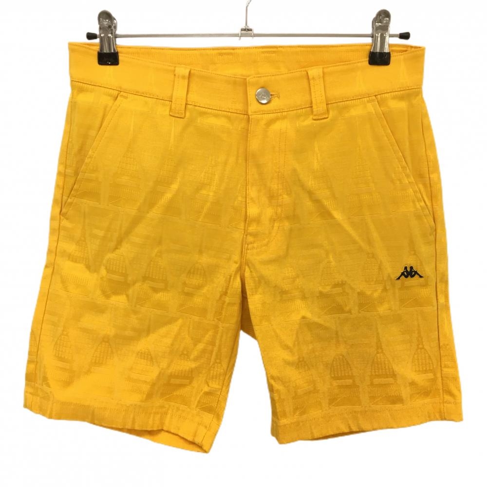 【超美品】カッパ ハーフパンツ イエロー 地模様総柄 ロゴ刺しゅう ストレッチ メンズ M ゴルフウェア Kappa
