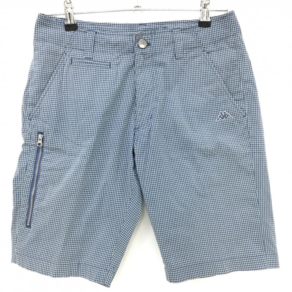 【超美品】カッパ ハーフパンツ グレー×スモーキーブルー チェック柄 ロゴ刺しゅう メンズ 82 ゴルフウェア Kappa