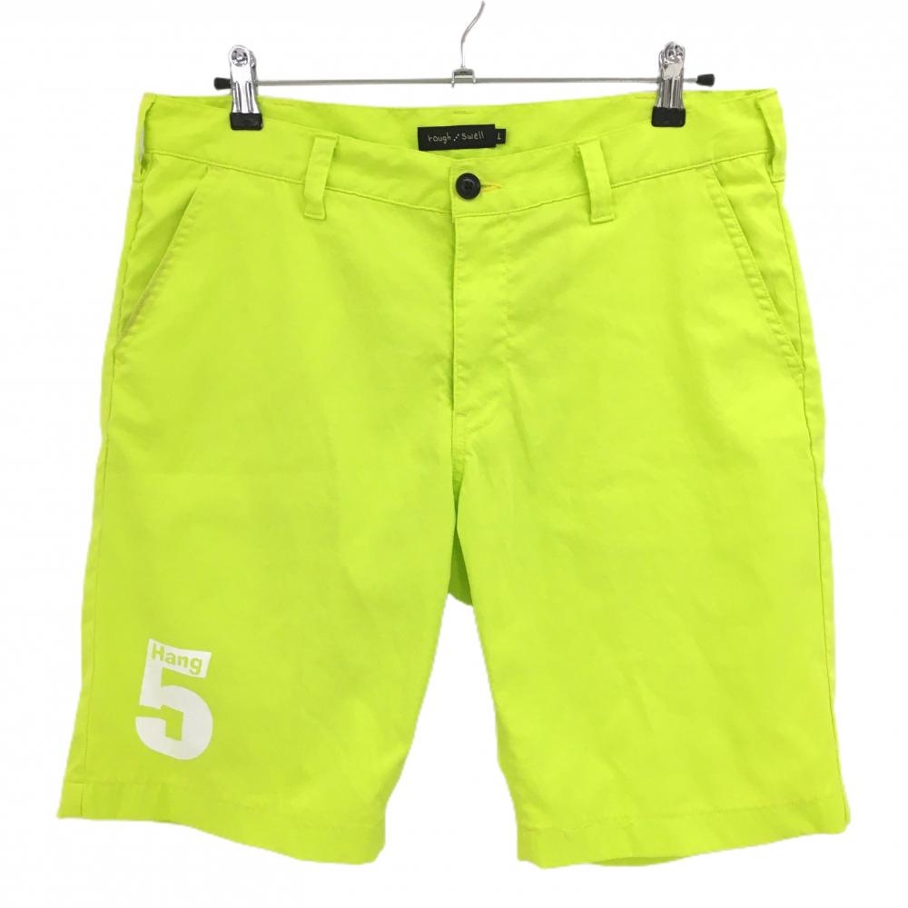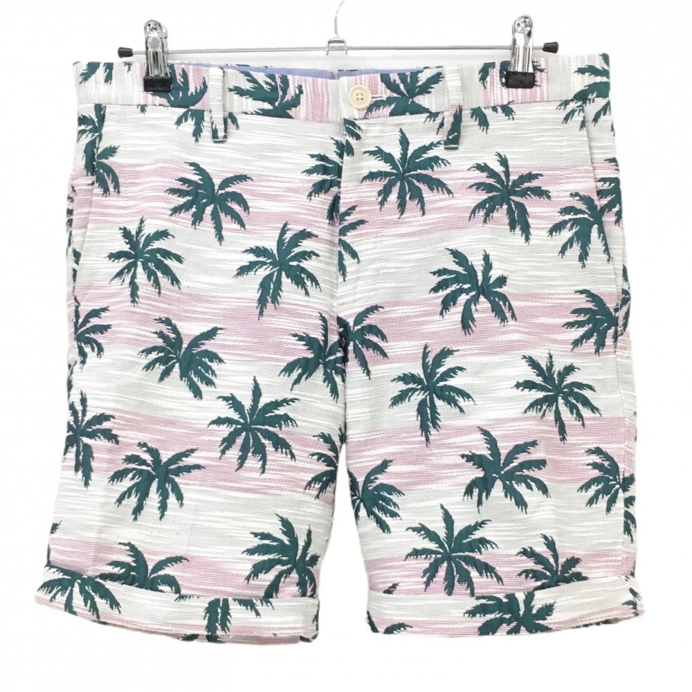 【超美品】ロサーセン ハーフパンツ イエロー×ダークブラウン ヤシの木柄 サーフィン サッカー生地 メンズ 82 ゴルフウェア Rosasen