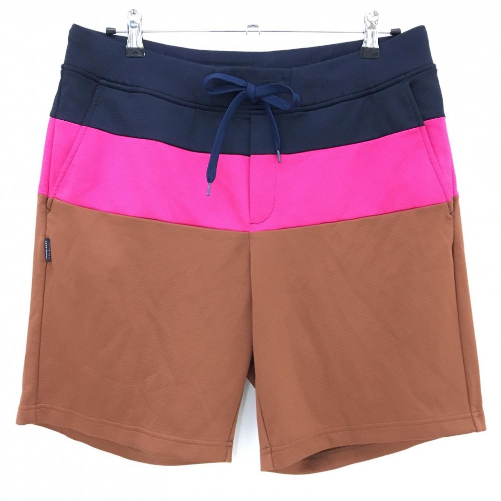 【超美品】キャロウェイ ハーフパンツ マルチカラー ストライプ柄 立体ロゴ メンズ L ゴルフウェア Callaway