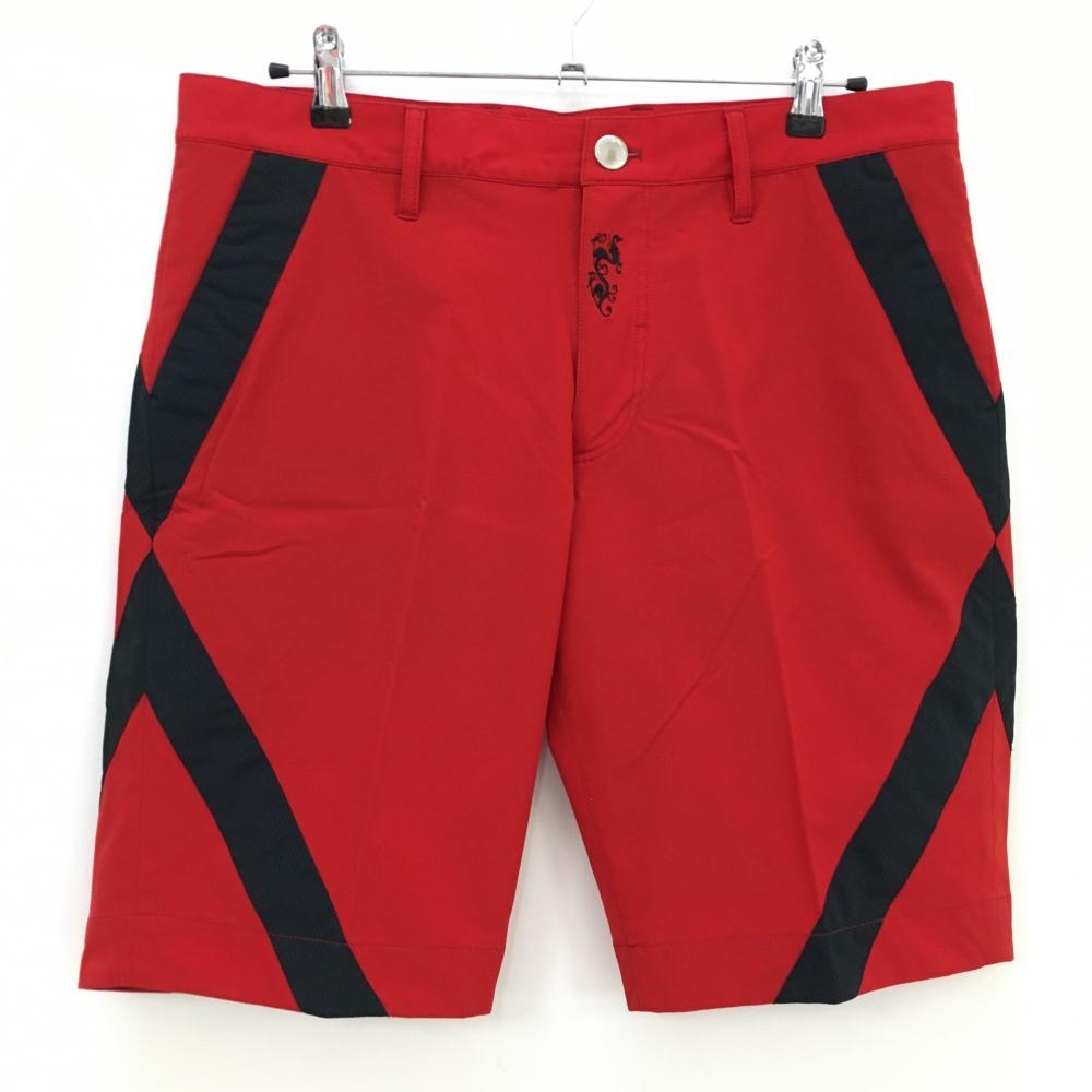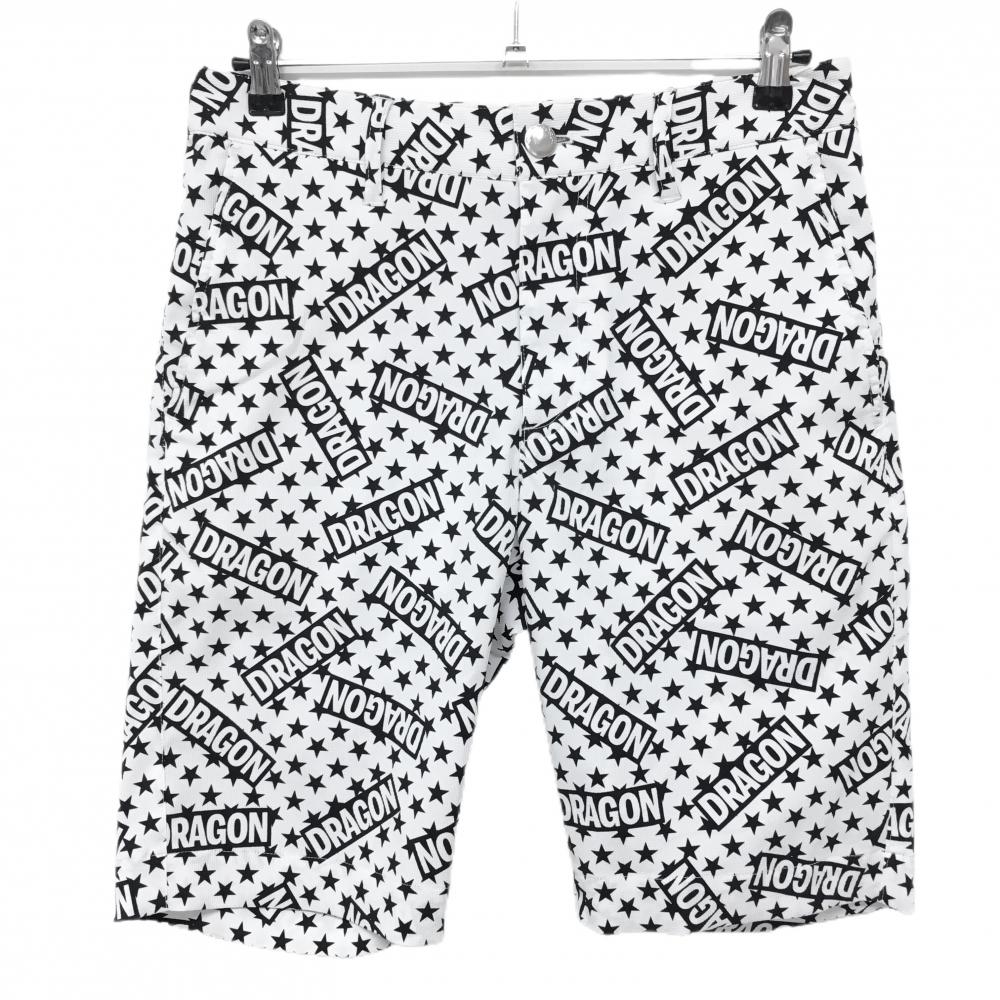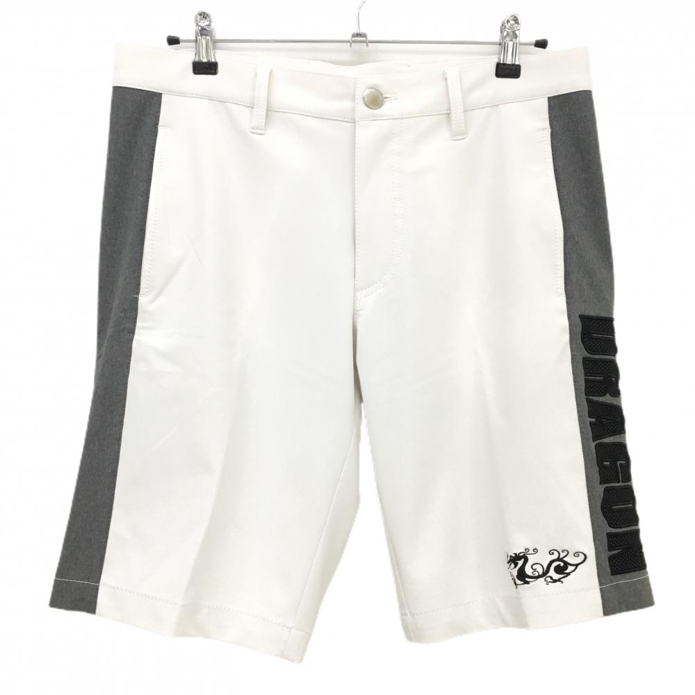 【美品】ダンスウィズドラゴン ハーフパンツ グレー系 ステッチ黒 メンズ 3(L) ゴルフウェア Dance With Dragon