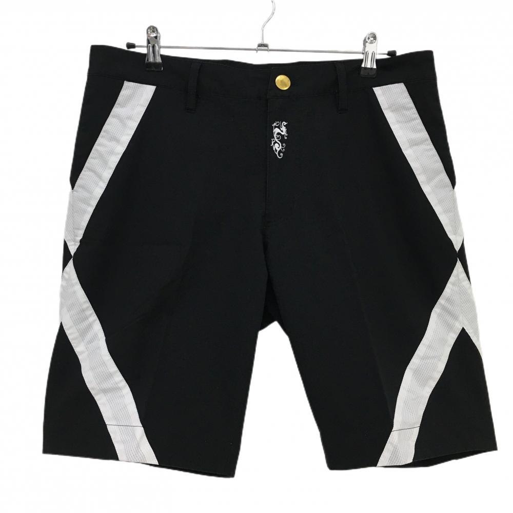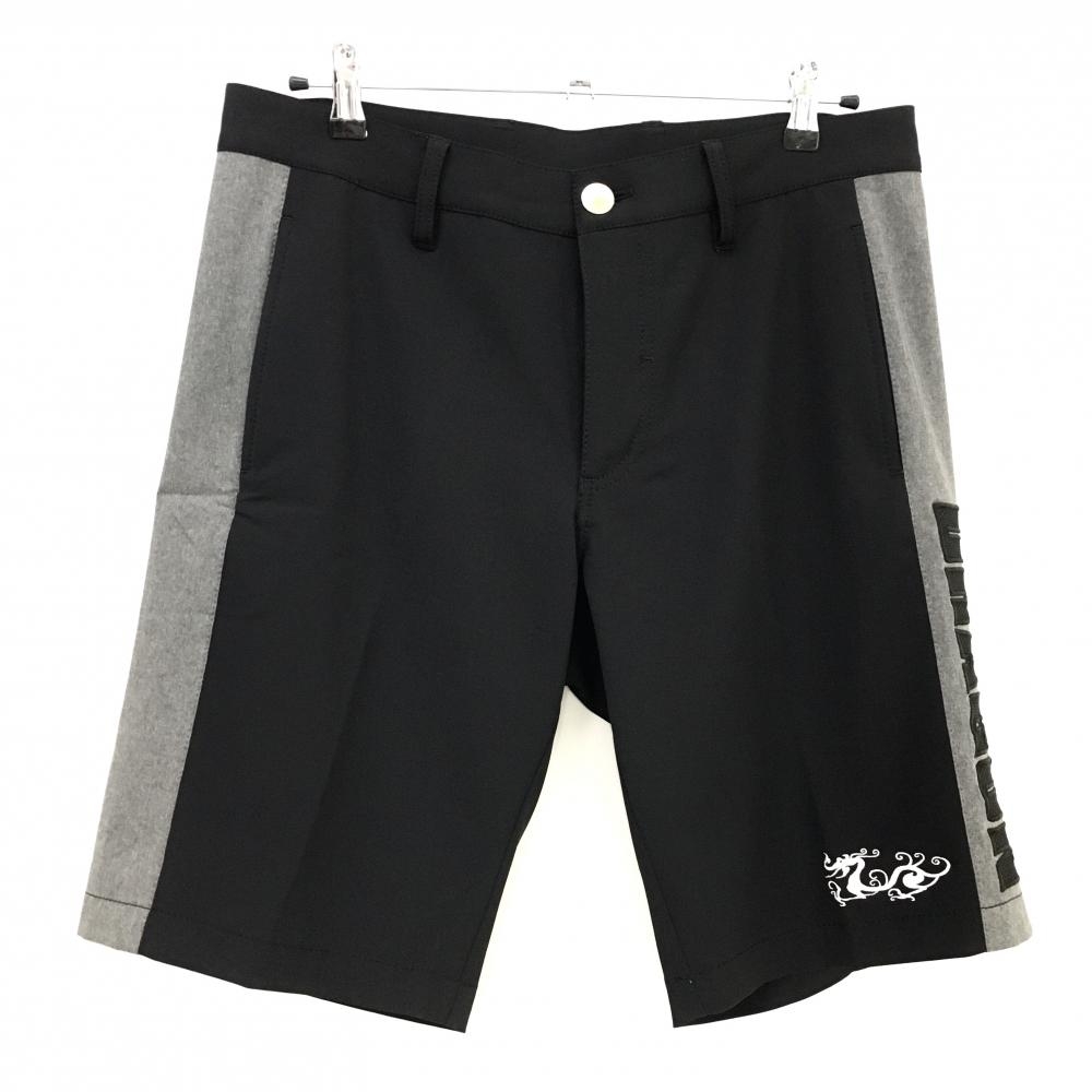 【超美品】プーマ ハーフパンツ 黒×白 ペイズリー ロゴ刺しゅう メンズ 79 ゴルフウェア PUMA