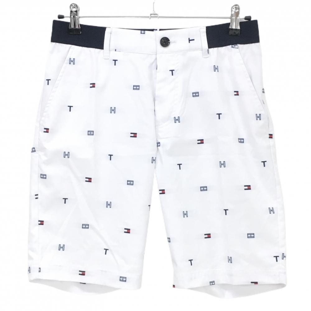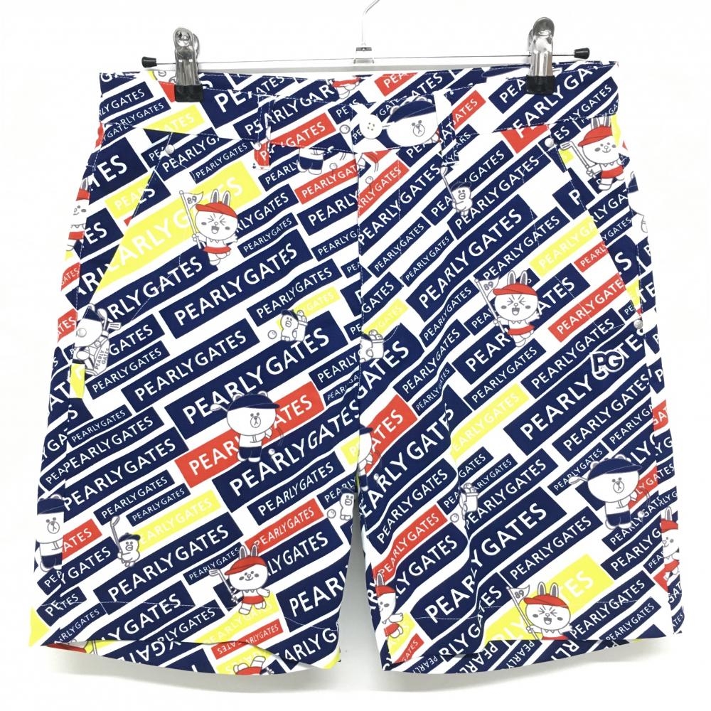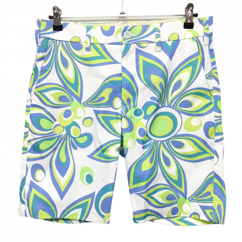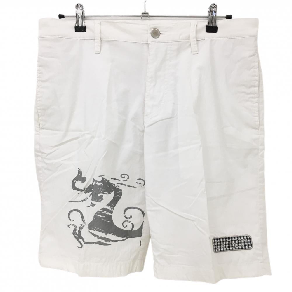 【超美品】ジャックバニー ハーフパンツ 白×マルチカラー 英字柄 メンズ 4(M) ゴルフウェア Jack Bunny