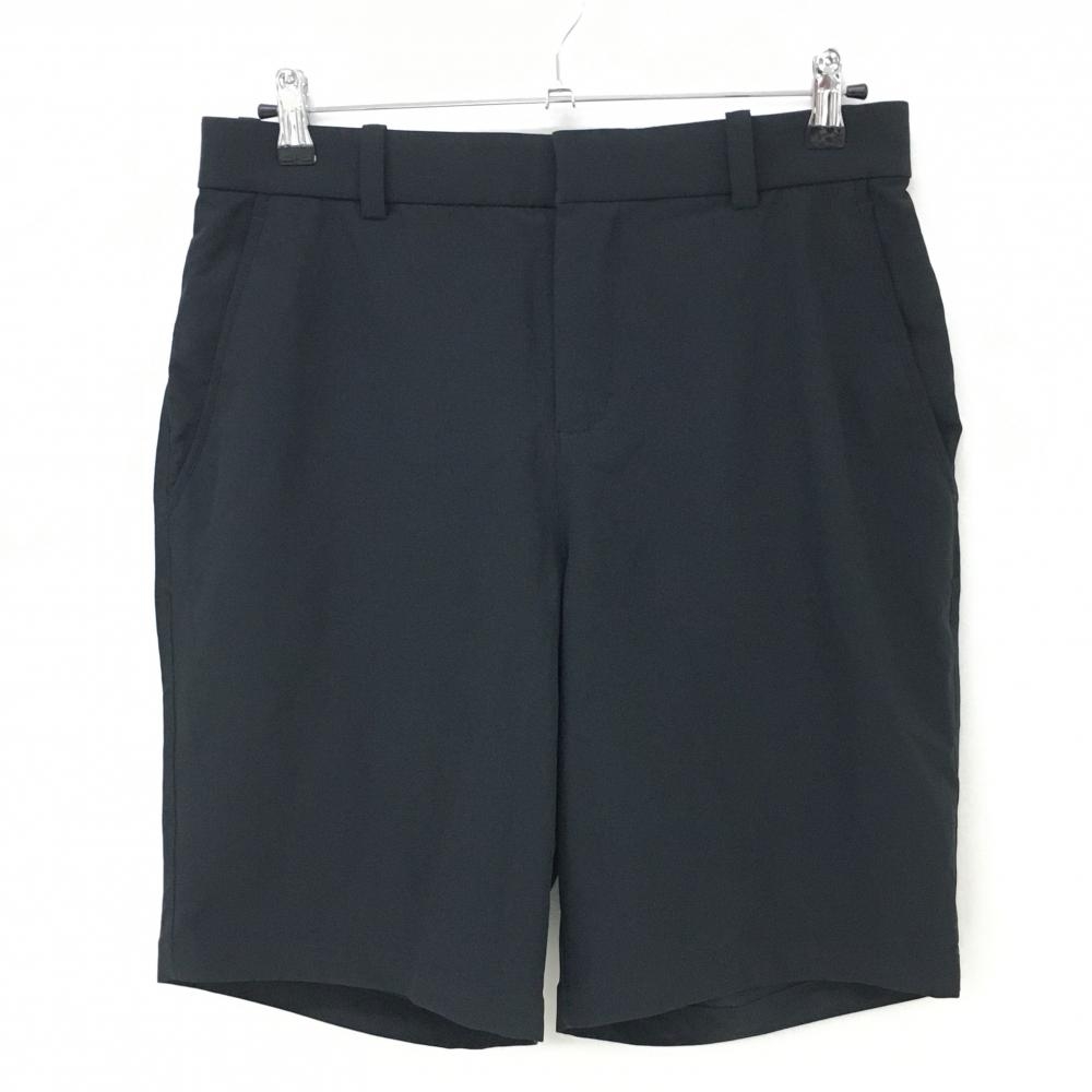 【美品】ブリーフィング ハーフパンツ 黒 麻混 無地 ポケット口色褪せ少 メンズ L ゴルフウェア BRIEFING