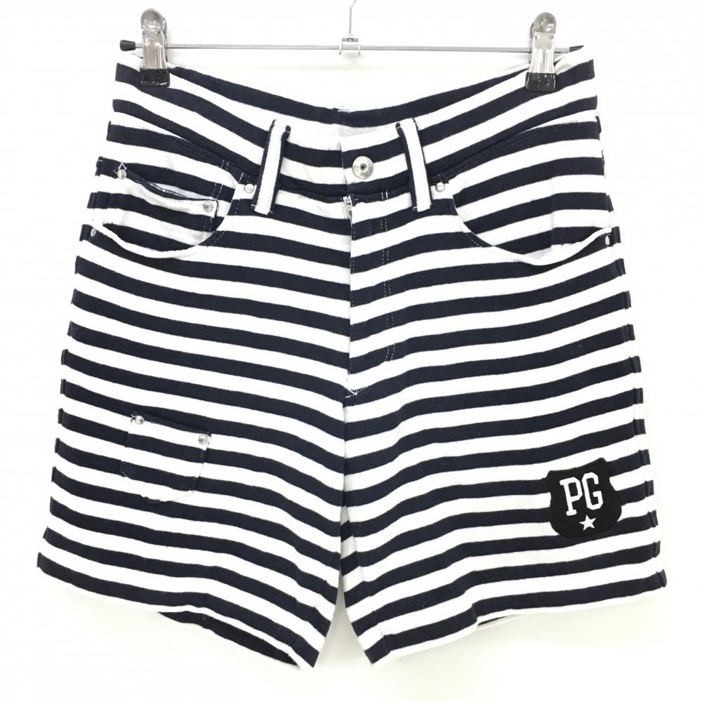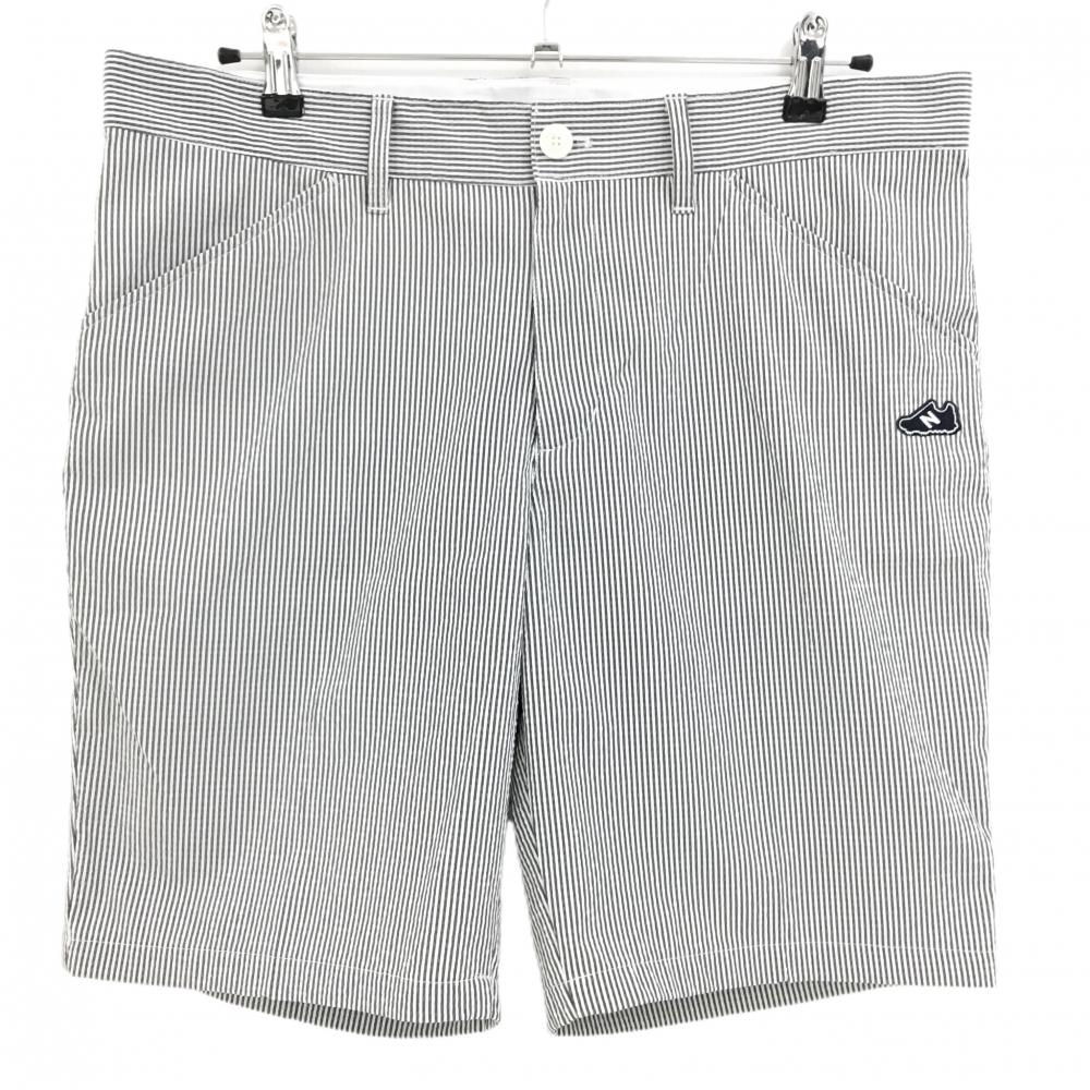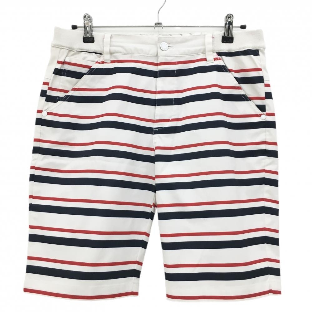 【超美品】パーリーゲイツ ハーフパンツ ネイビー×白 ギザギザ細ボーダー ストレッチ メンズ 3(S) ゴルフウェア PEARLY GATES