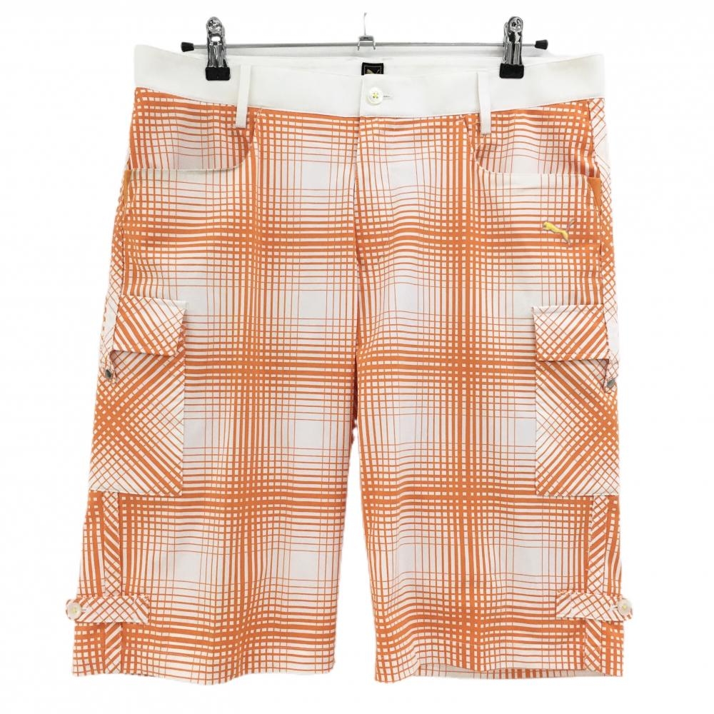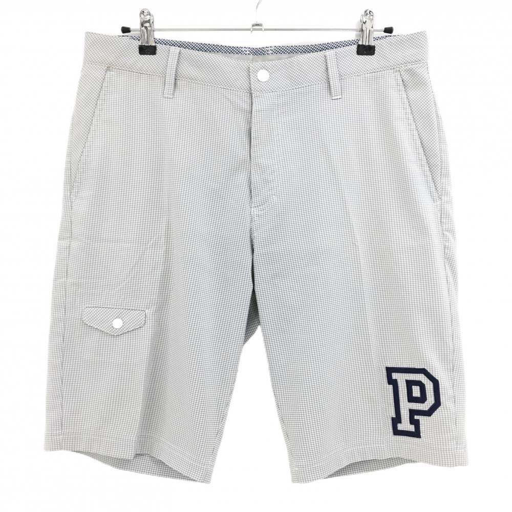 プーマ ハーフパンツ グレー×白 格子柄織生地 メンズ XL ゴルフウェア PUMA