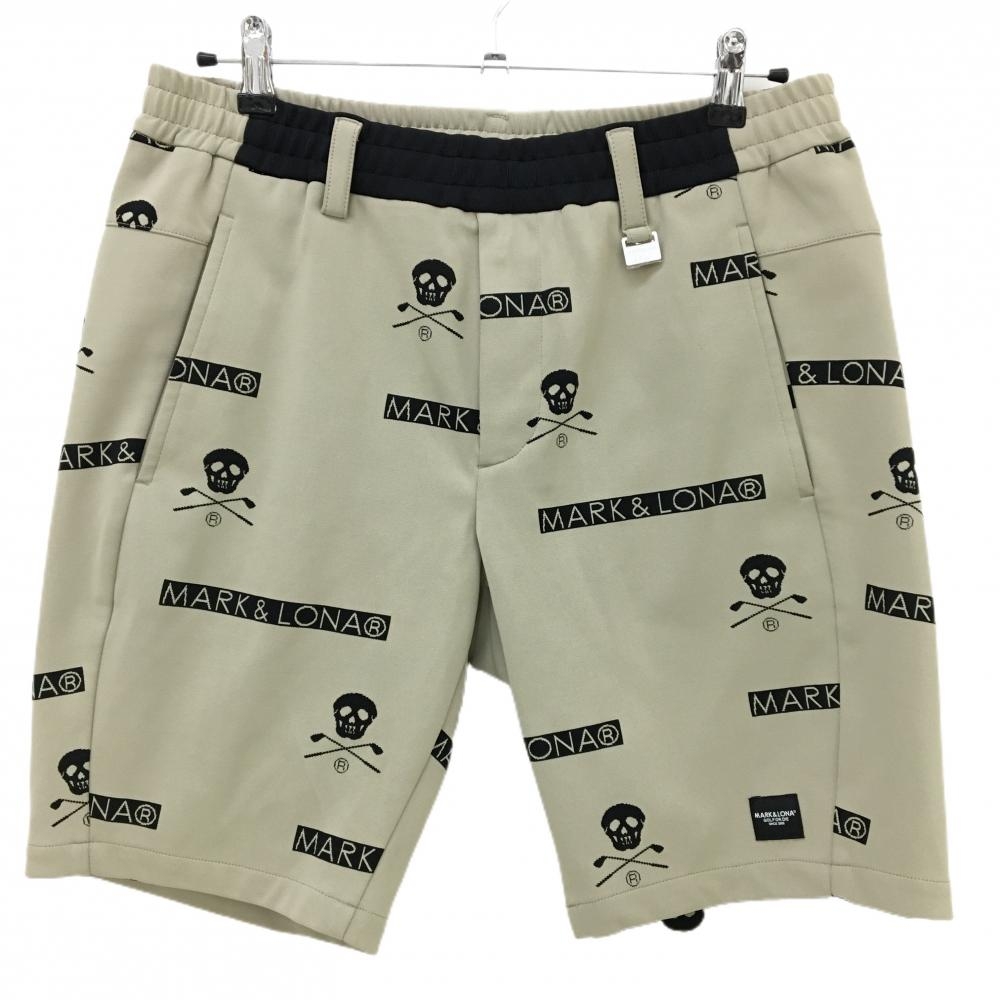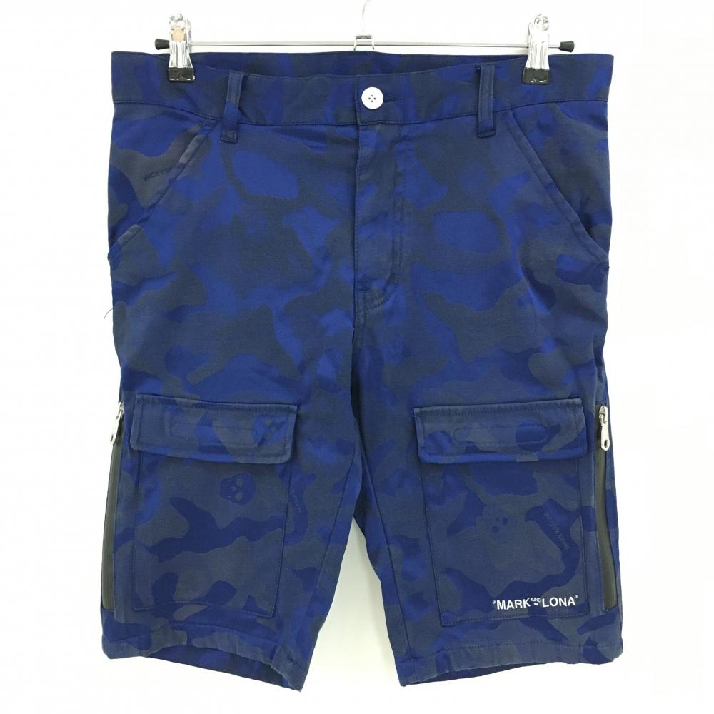 マークアンドロナ カーゴハーフパンツ ネイビー×ブルー スカルゴルファー総柄 メッシュ裏地 メンズ S ゴルフウェア MARK&LONA