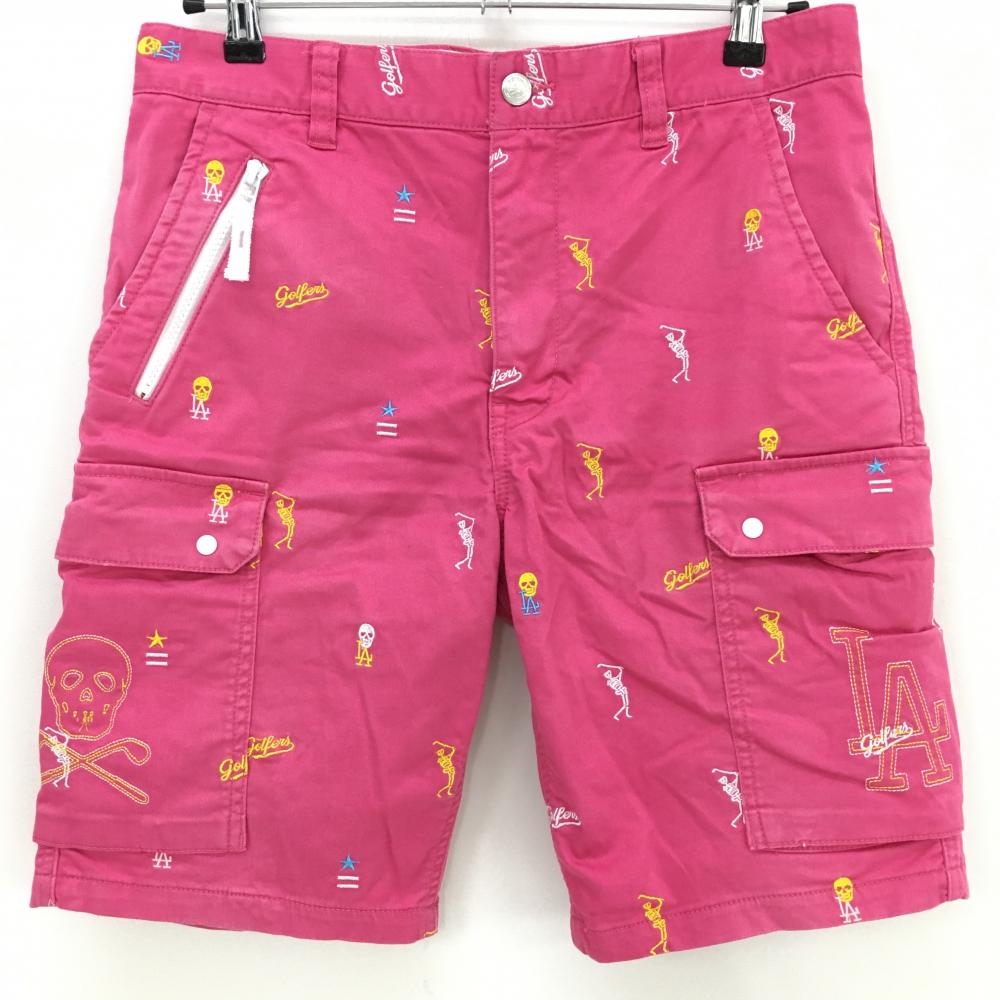 【超美品】アディダス ハーフパンツ ピンク 総柄 バックロゴ メンズ O/XG ゴルフウェア adidas