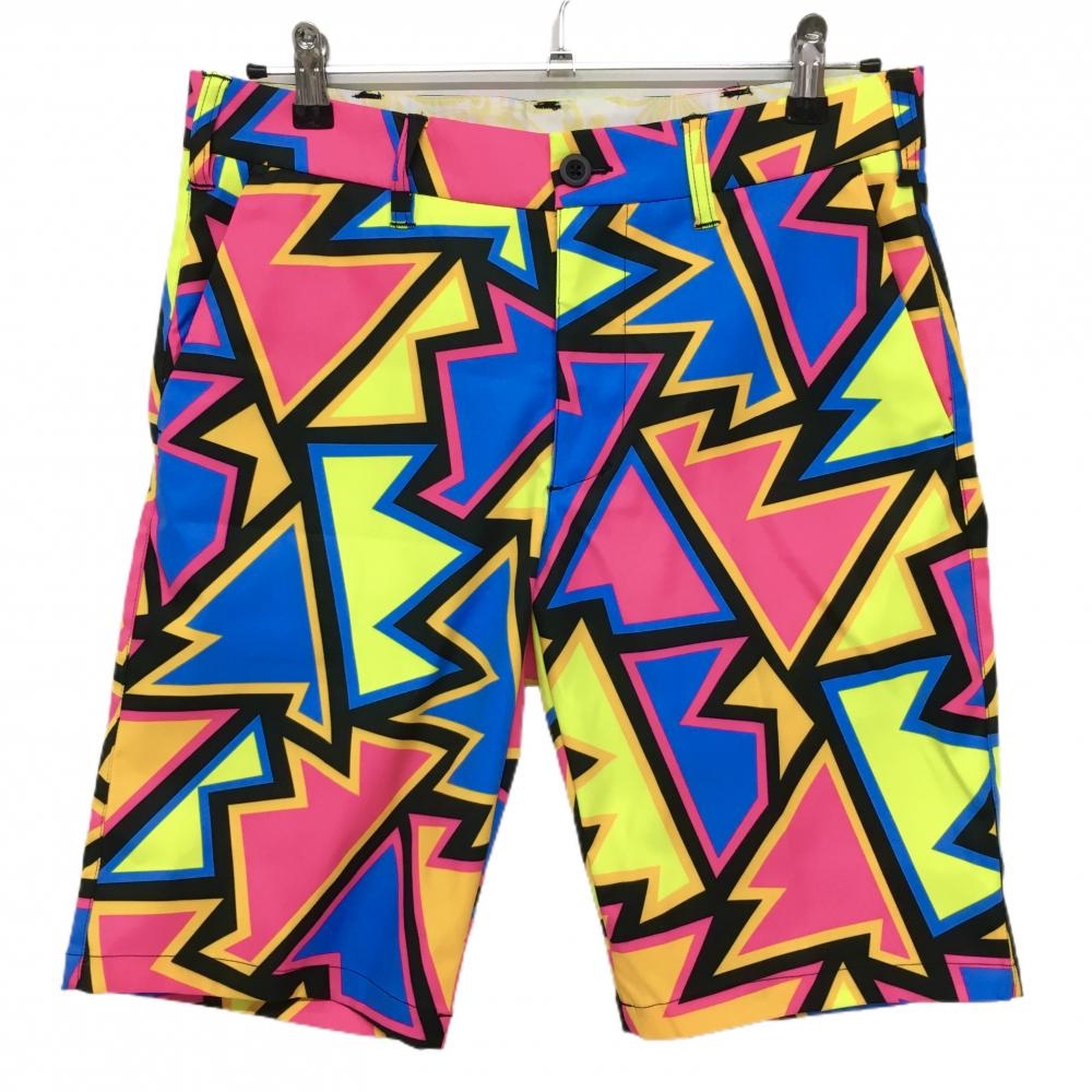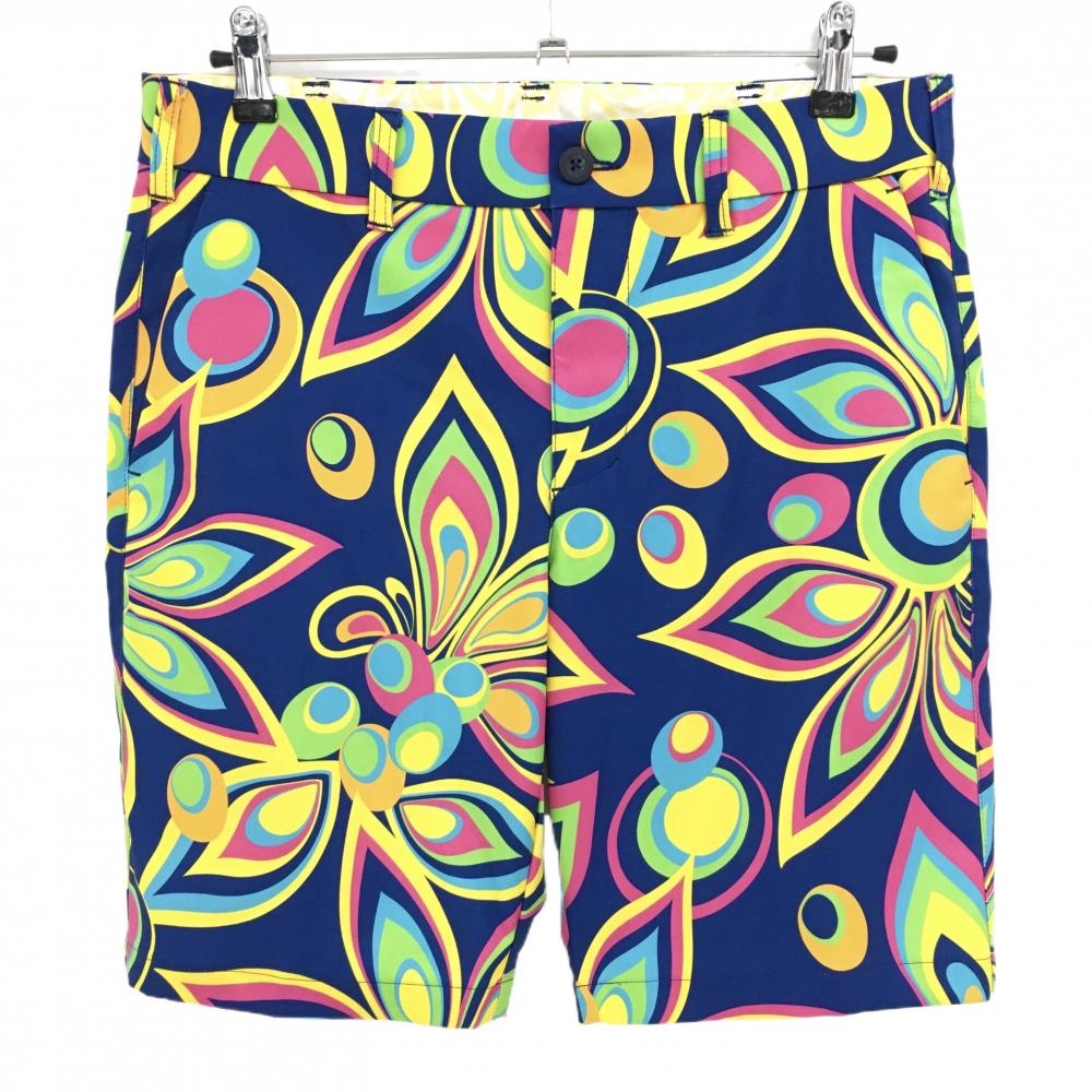 【超美品】ラウドマウス ハーフパンツ ネイビー×マルチカラー シャガデリック 総柄 ストレッチ メンズ LL ゴルフウェア LOUDMOUTH