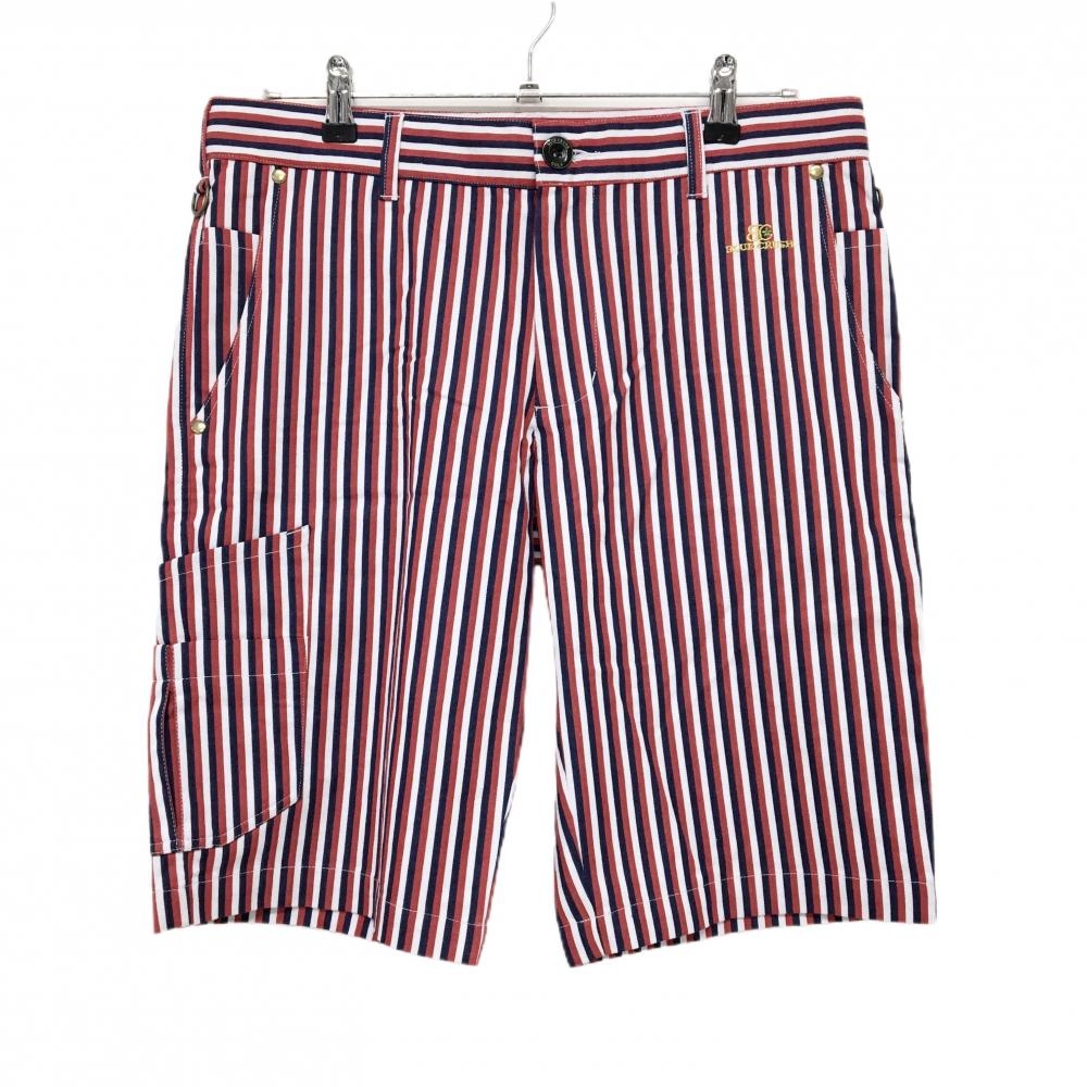 パーリーゲイツ ハーフパンツ ピンク×ネイビー×白 ストライプ コットン100% メンズ 4(M) ゴルフウェア PEARLY GATES