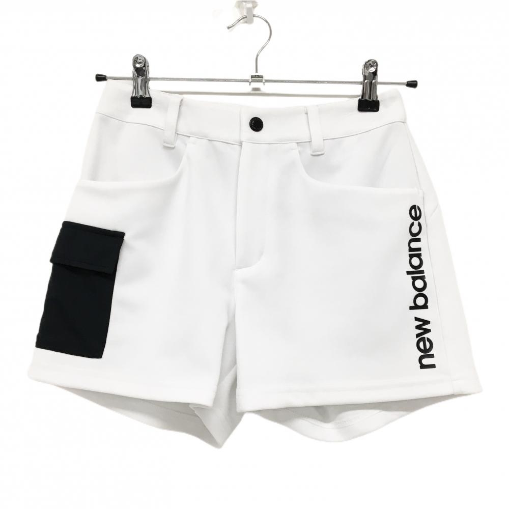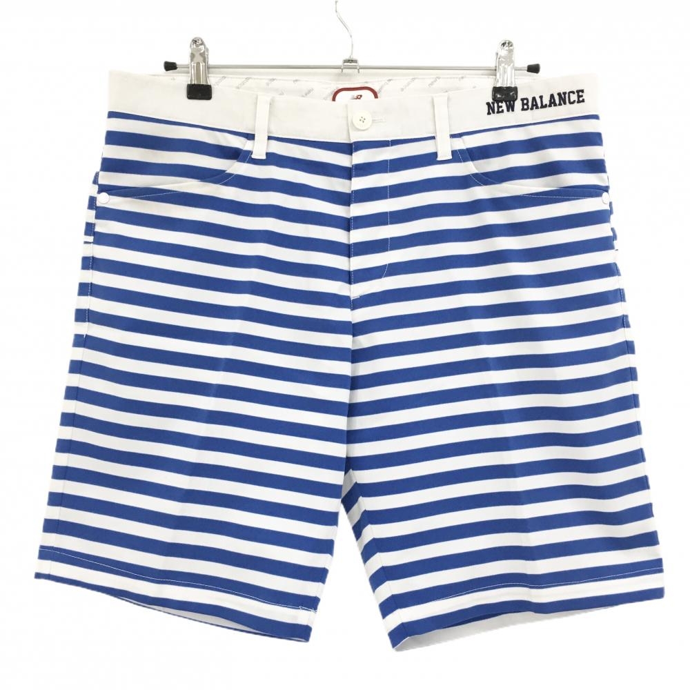 【新品】ニューバランスゴルフ ハーフパンツ 白×ライトブルー系 ストライプ 総柄 サッカー生地 メンズ 5(L) ゴルフウェア New Balance