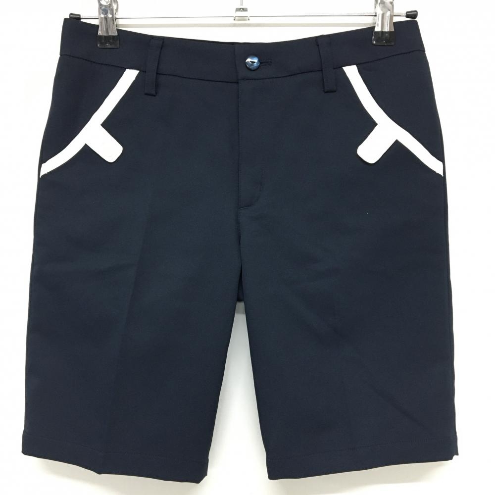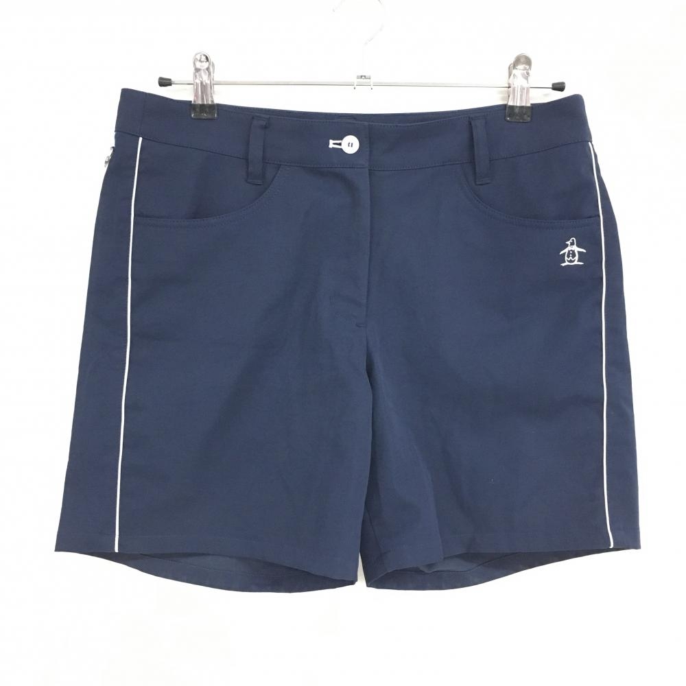 【超美品】マンシングウェア ショートパンツ ネイビー 白ステッチ ストレッチ レディース 13(XL) ゴルフウェア Munsingwear