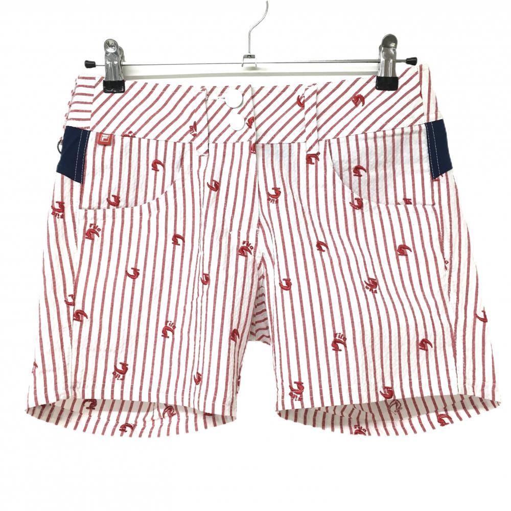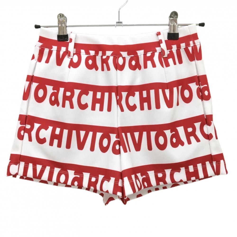 【美品】アルチビオ ショートパンツ 白×レッド ロゴボーダー レディース 36(S) ゴルフウェア 2023年モデル archivio
