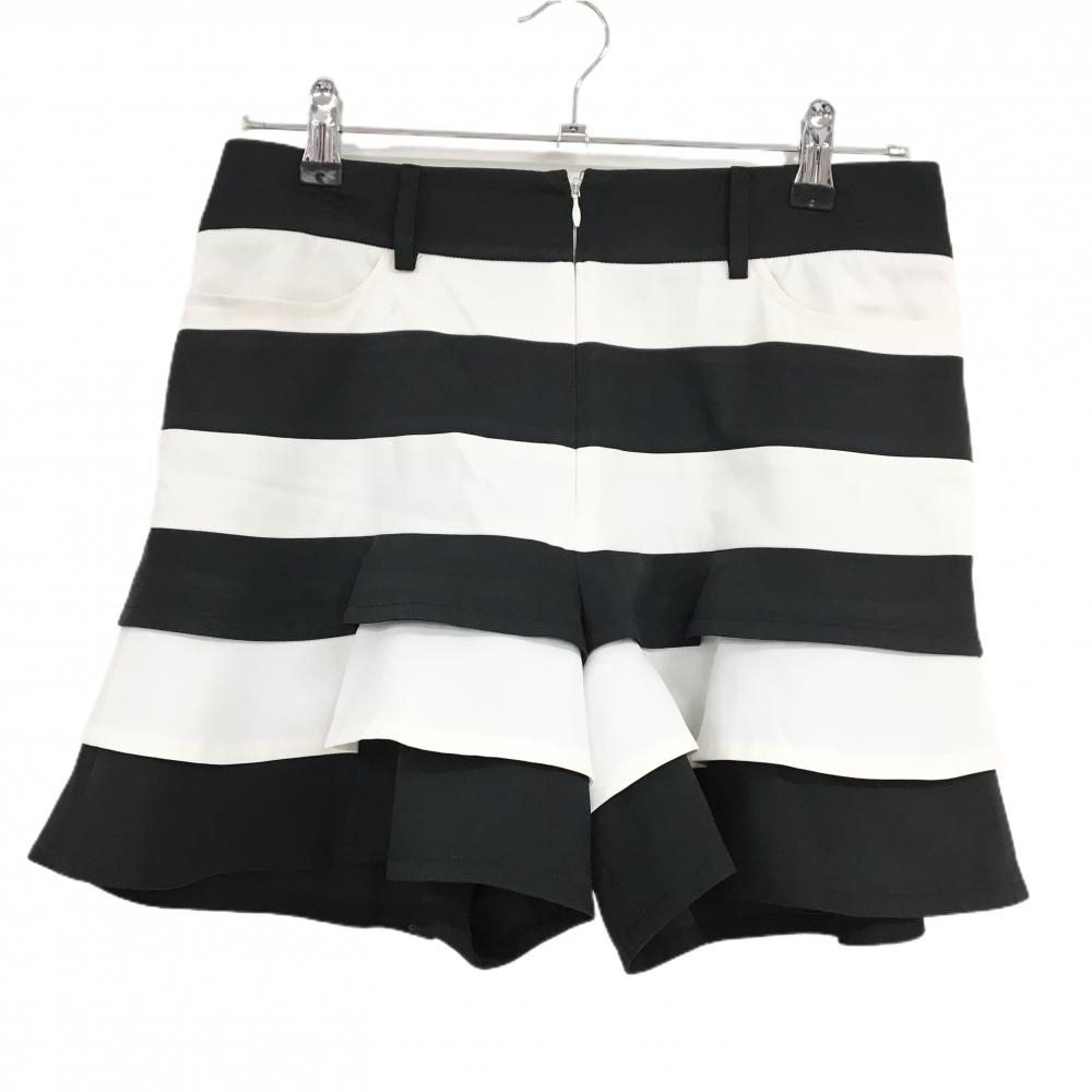 【美品】サマンサタバサNo.7 ショートパンツ 黒×白 ボーダー ストレッチ 裏地付 レディース 38(M) ゴルフウェア Samantha Thavasa