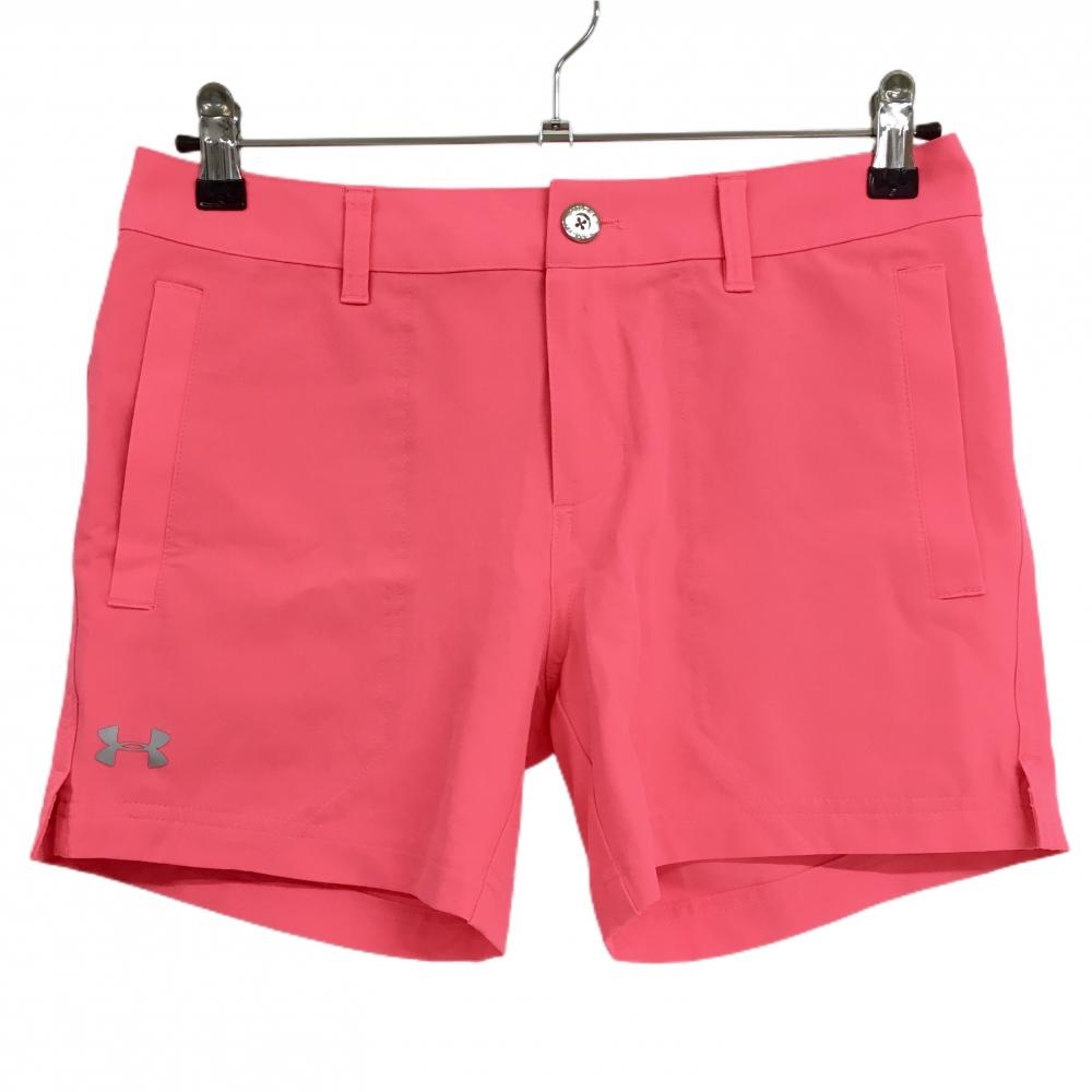 【超美品】アンダーアーマー ショートパンツ 白×ピンク 千鳥柄 ロゴ刺しゅう レディース O ゴルフウェア UNDER ARMOUR