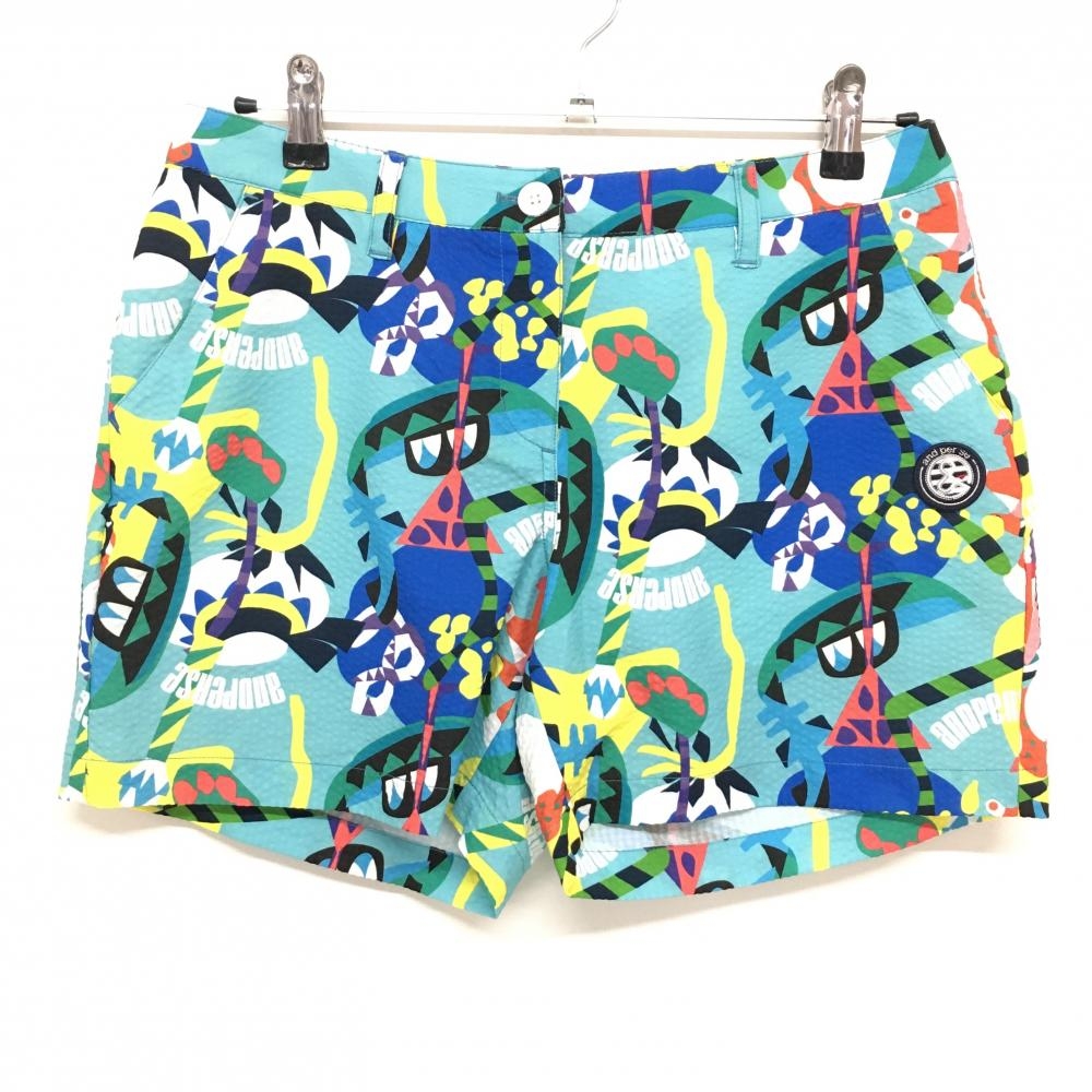 アンパスィ ショートパンツ ライトブルー クラウンワッペン ロゴ刺しゅう ストレッチ レディース L ゴルフウェア and per se