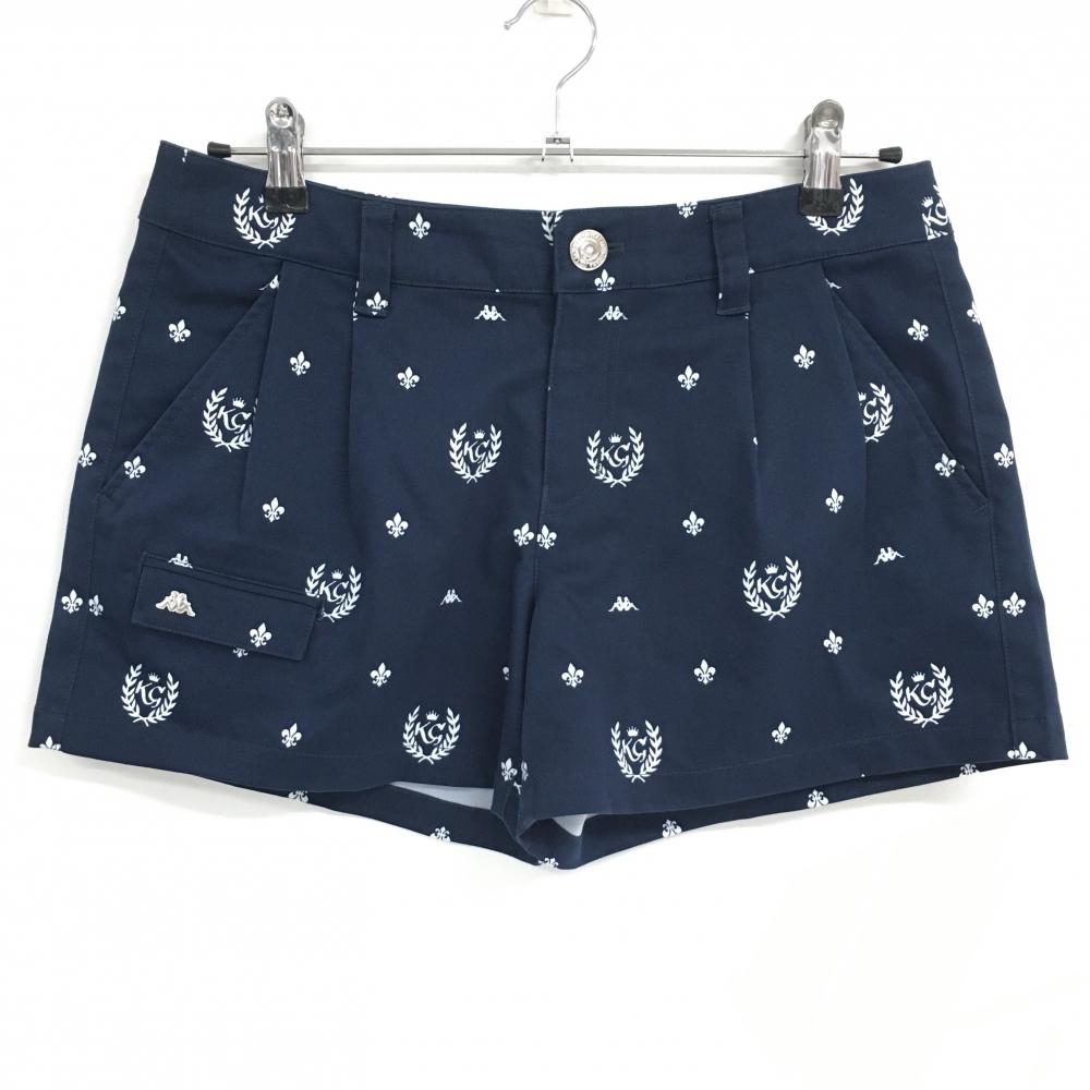 パーリーゲイツ ショートパンツ ネイビー×白 総柄 アイス ウエスト調整紐 レディース 0(S) ゴルフウェア PEARLY GATES