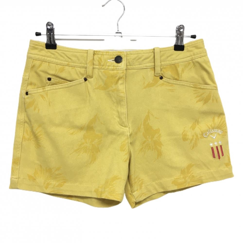 【新品】キャロウェイ ショートパンツ 白×ネイビー×イエロー シェル柄 貝殻 速乾 レディース L ゴルフウェア Callaway