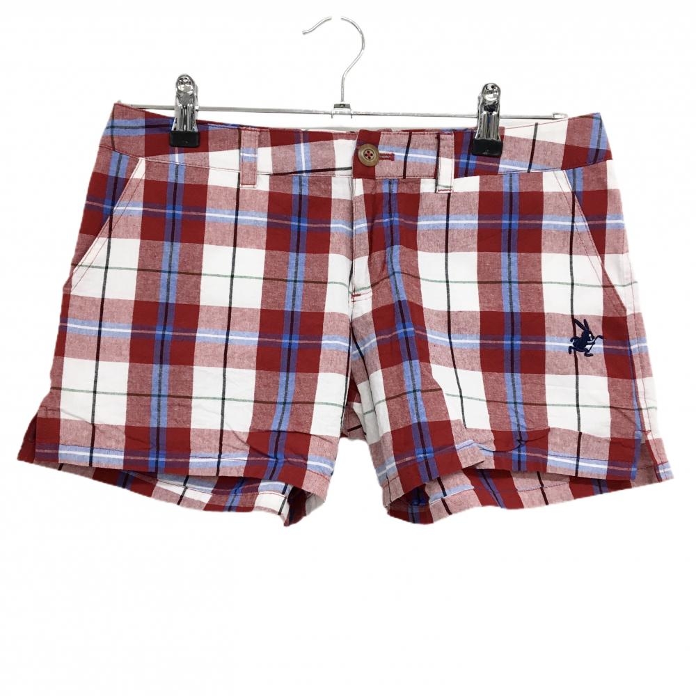 【美品】マスターバニー ショートパンツ レッド×黒 格子柄織生地 レディース 0(S) ゴルフウェア MASTER BUNNY EDITION