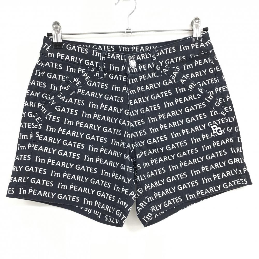 【超美品】パーリーゲイツ×PEANUTS ショートパンツ ネイビー×黒 スヌーピーシルエット総柄 レディース 0(S) ゴルフウェア PEARLY GATES