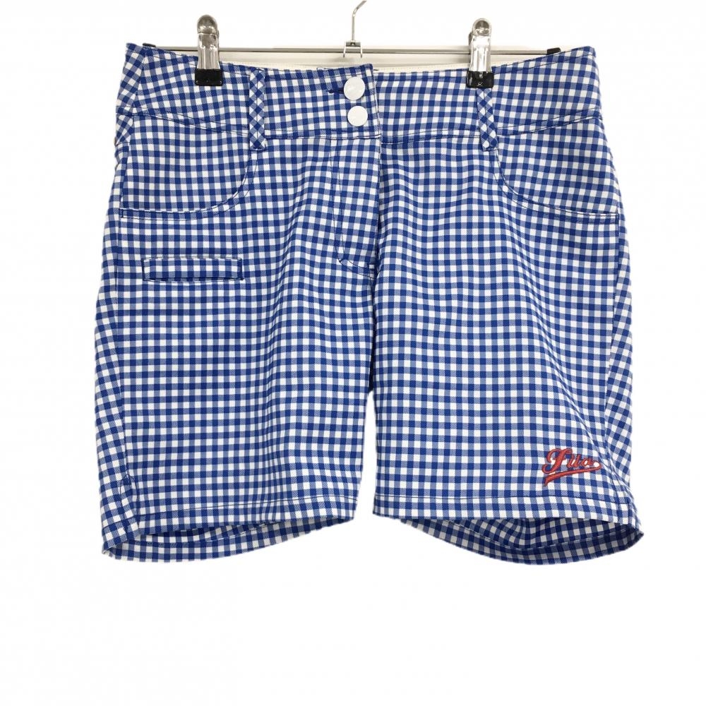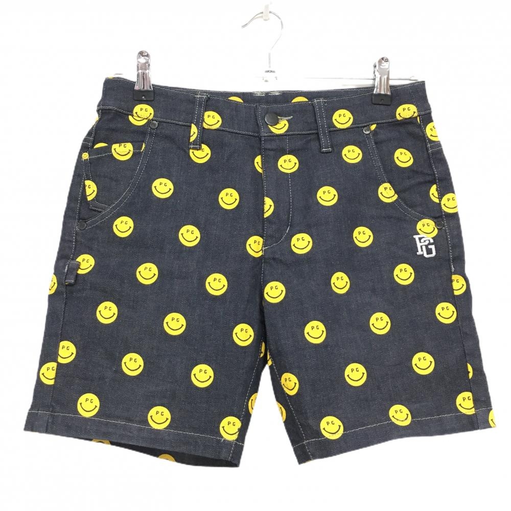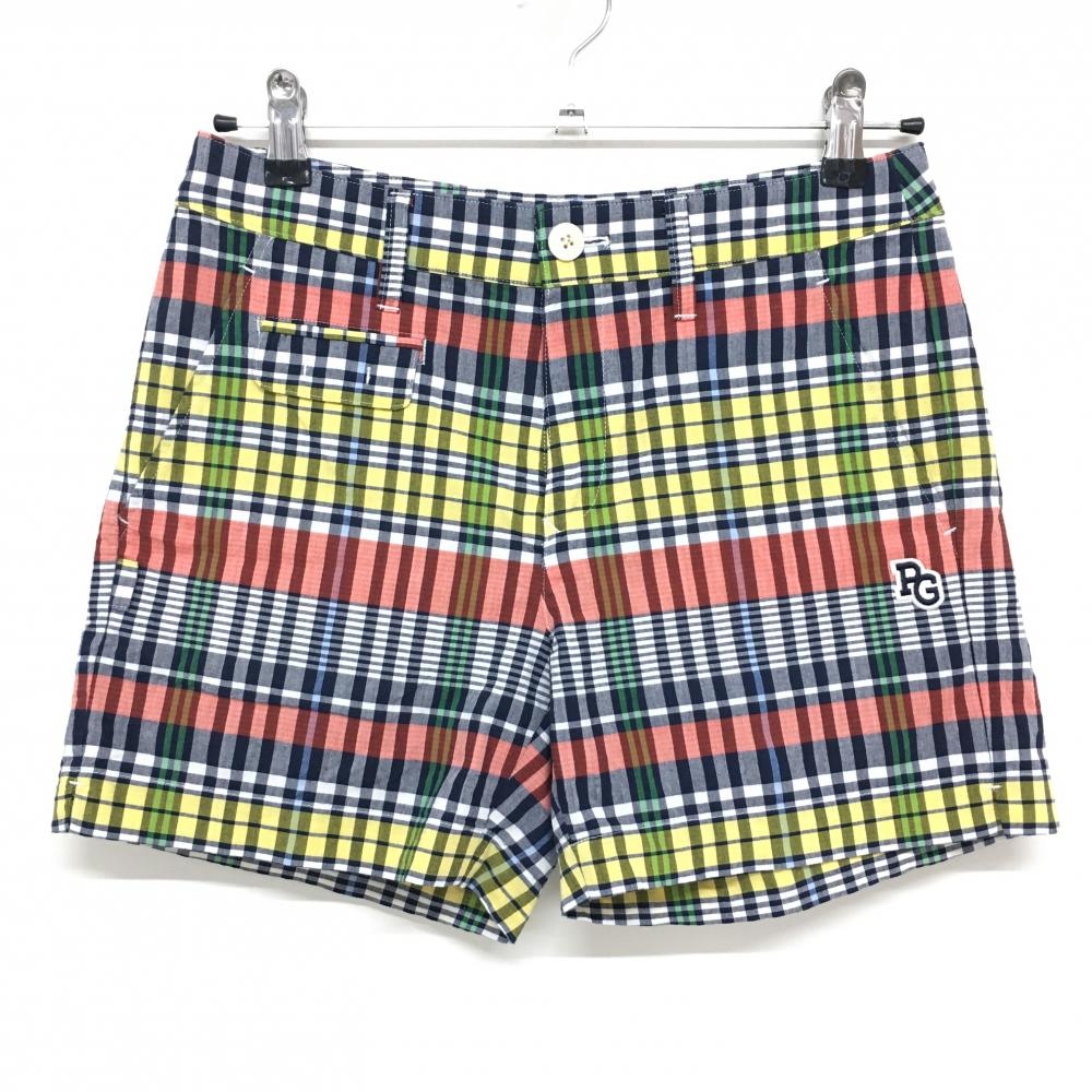 【美品】パーリーゲイツ ショートパンツ ネイビー×白 チェック ひまわり 内側30周年 レディース 1(M) ゴルフウェア PEARLY GATES