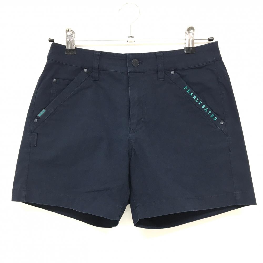 【美品】パーリーゲイツ ショートパンツ ネイビー×黒 ストライプ サッカー生地調 レディース 1(M) ゴルフウェア PEARLY GATES