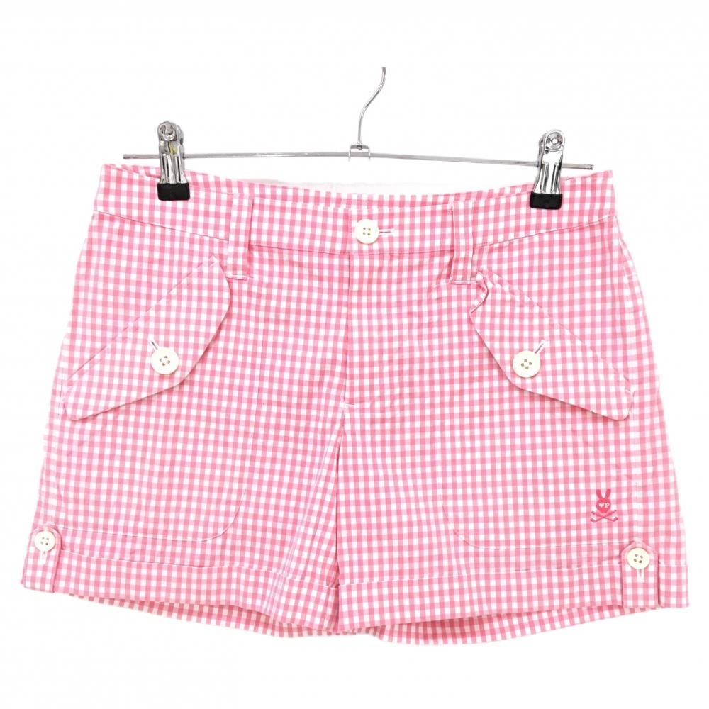 【美品】マークアンドロナ ショートパンツ ライトピンク ストレッチ スカル レディース M ゴルフウェア MARK&LONA