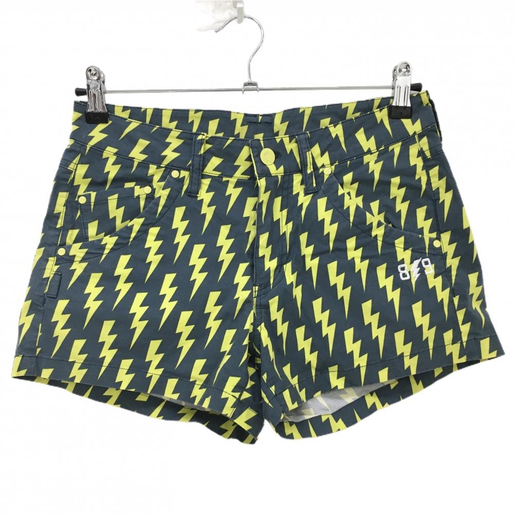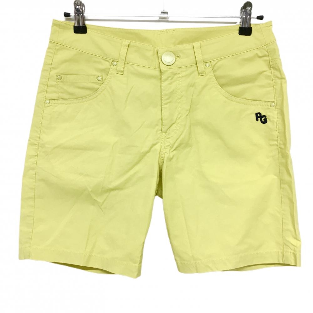【美品】パーリーゲイツ ショートパンツ イエロー×黒 なまけもの総柄 レディース 1(M) ゴルフウェア PEARLY GATES