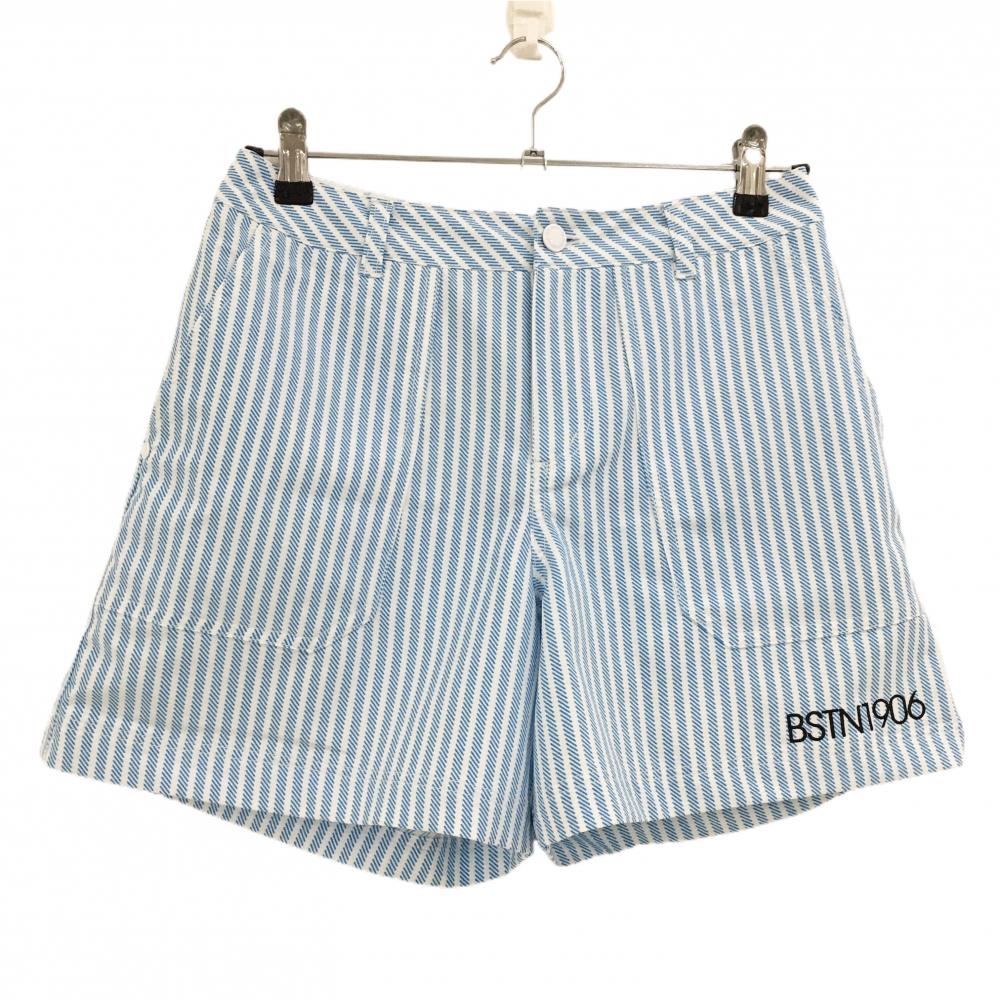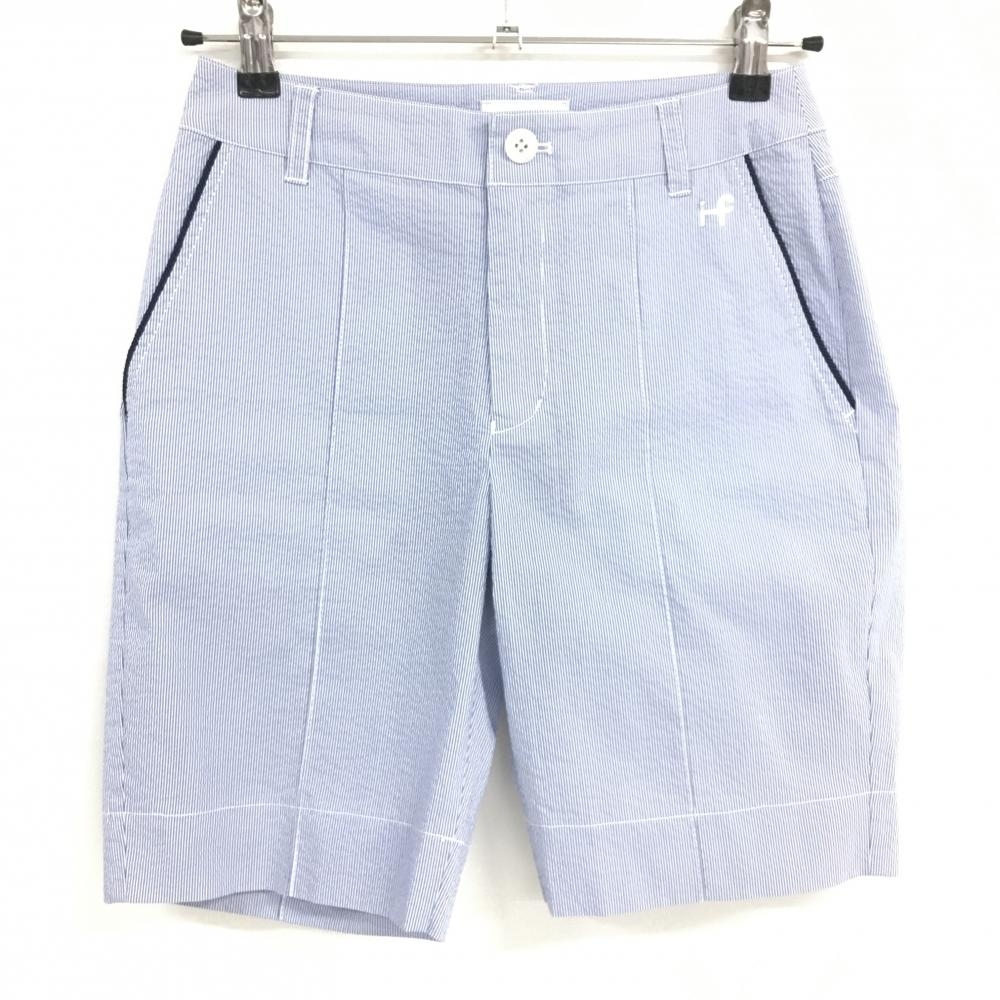 【美品】パーリーゲイツ ショートパンツ 白×ネイビー ボーダー 30周年 内側ニコちゃん レディース 0(S) ゴルフウェア PEARLY GATES