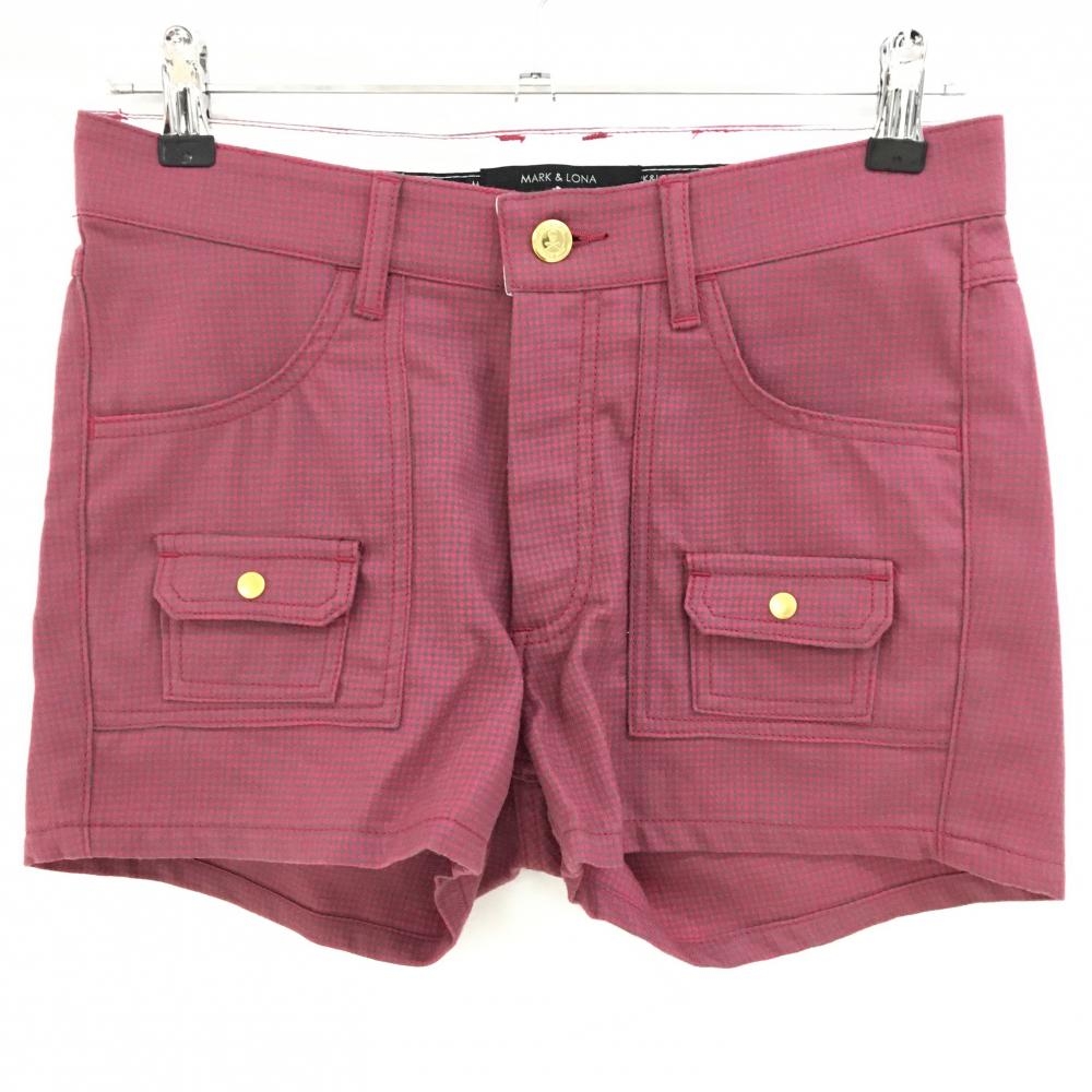 【超美品】マークアンドロナ ショートパンツ ピンク×グレー チェック ウール混 レディース M ゴルフウェア MARK&LONA