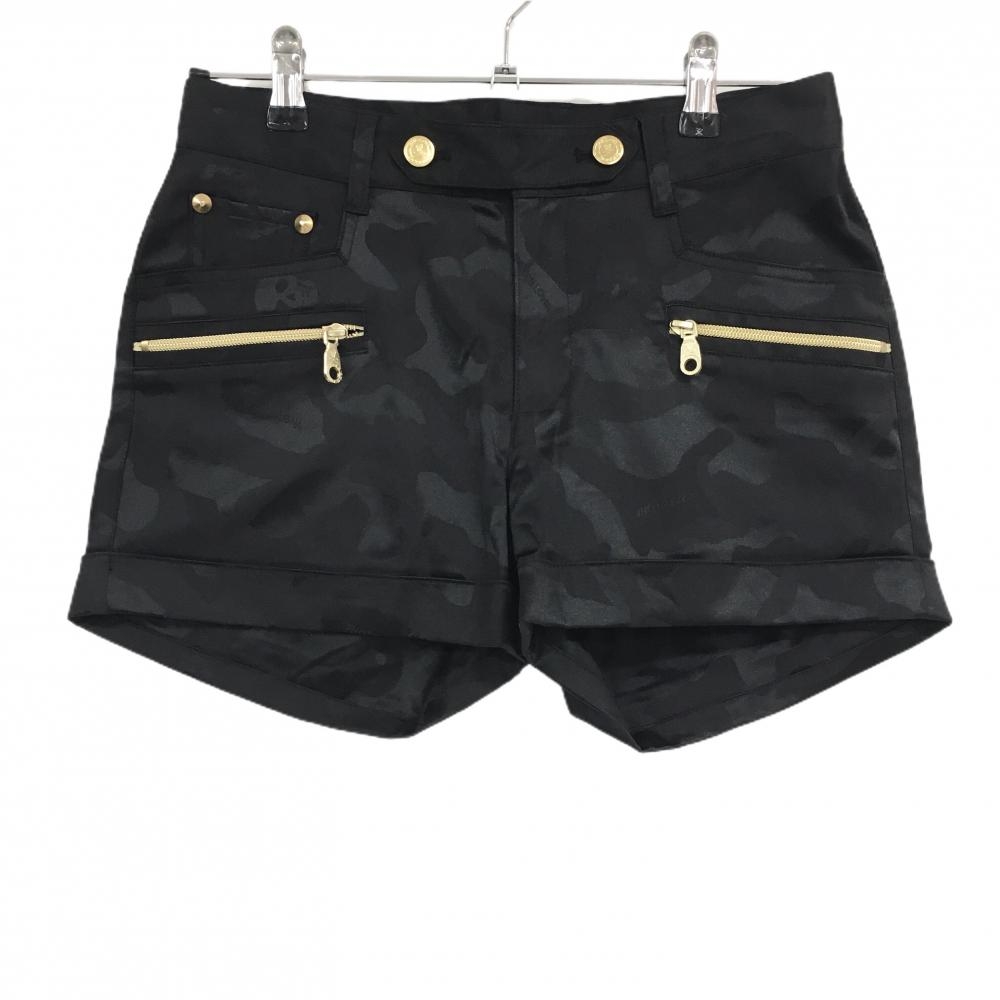【美品】パーリーゲイツ ショートパンツ 黒×グリーン ダメージ加工 ロゴ刺しゅう レディース 0(S) ゴルフウェア PEARLY GATES