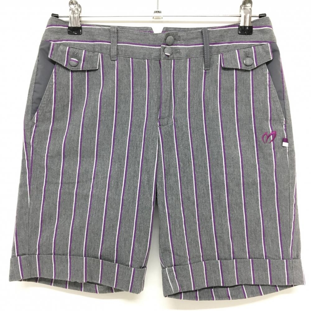 ゾーイ ショートパンツ グレー×ライトグレー ストライプ 裏地付き レディース 38(M) ゴルフウェア ZOY