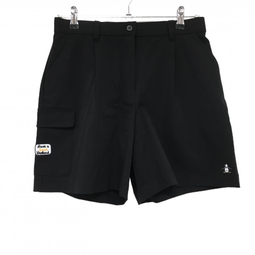 ヒールクリーク ショートパンツ 黒 後ろロゴ 裾裏起毛 裏地付 レディース 42(L) ゴルフウェア Heal Creek