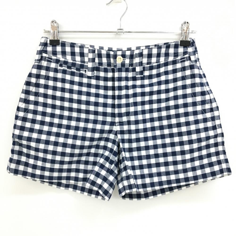 パーリーゲイツ ショートパンツ 白×ネイビー 千鳥格子 複数ポケット レディース 2(L) ゴルフウェア PEARLY GATES