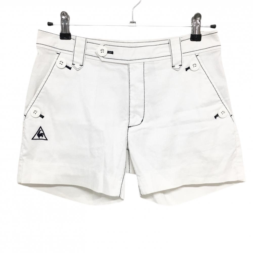 パーリーゲイツ ショートパンツ 白 織生地 ロゴネイビー ストレッチ レディース 2(L) ゴルフウェア PEARLY GATES