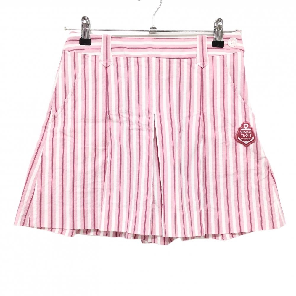 【超美品】23区スポーツ キュロットスカート ライトピンク×白 ストライプ サッカー生地 レディース 58 ゴルフウェア 23区