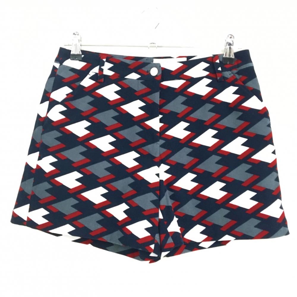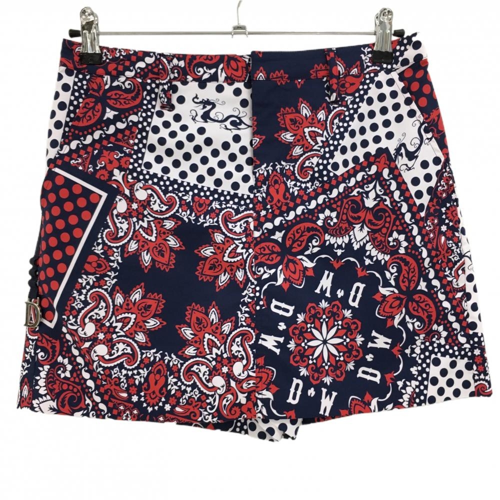 ブラックアンドホワイト キュロットスカート ネイビー×レッド 総柄 バックロゴ レディース L ゴルフウェア Black&White