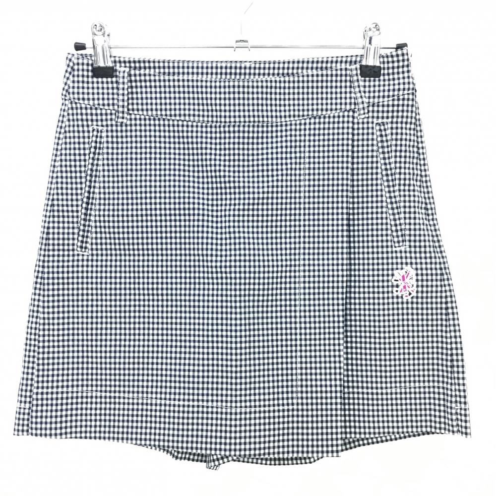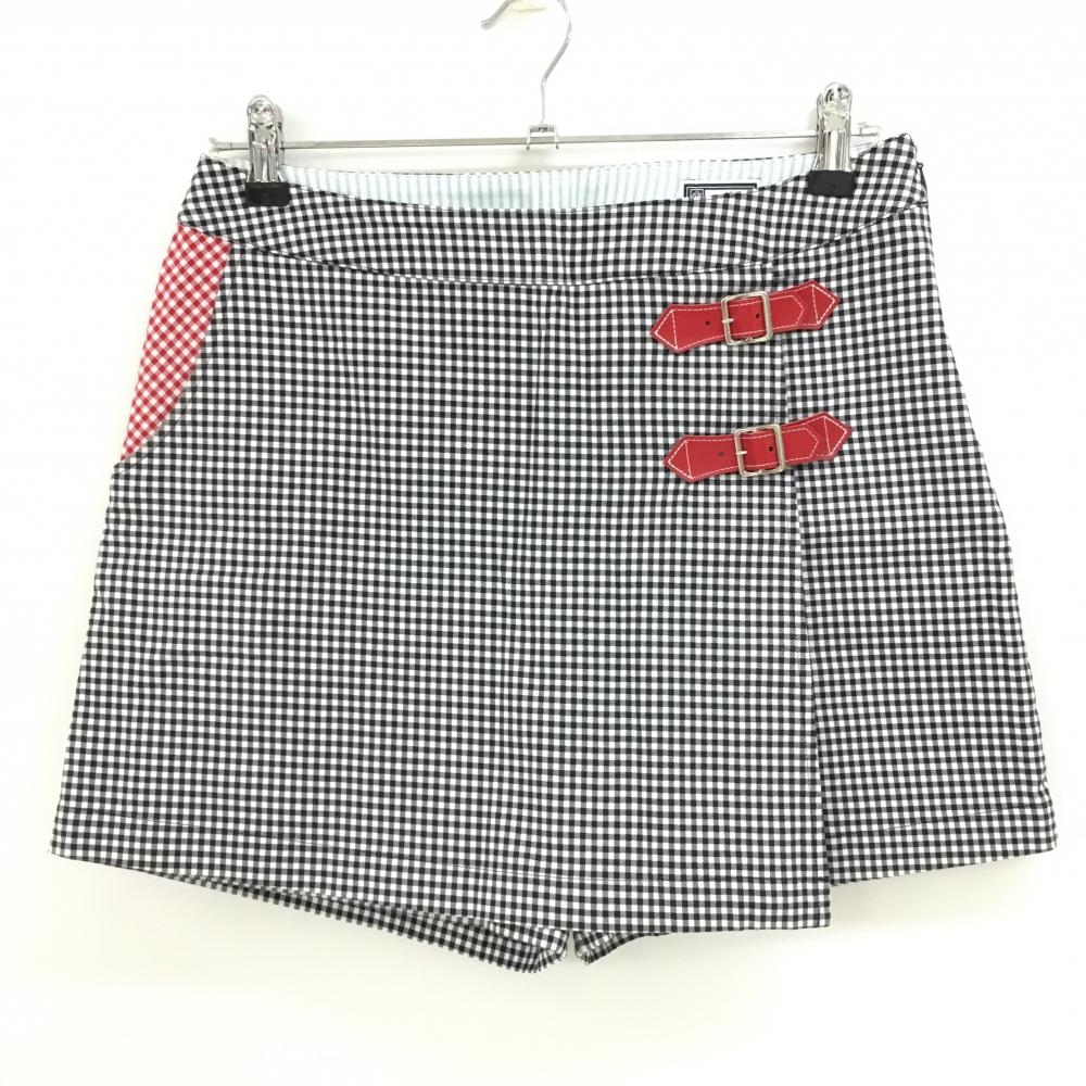 【美品】ブラックアンドホワイト キュロットスカート 白×黒 チェック ゴールドタグ付き レディース L ゴルフウェア Black&White
