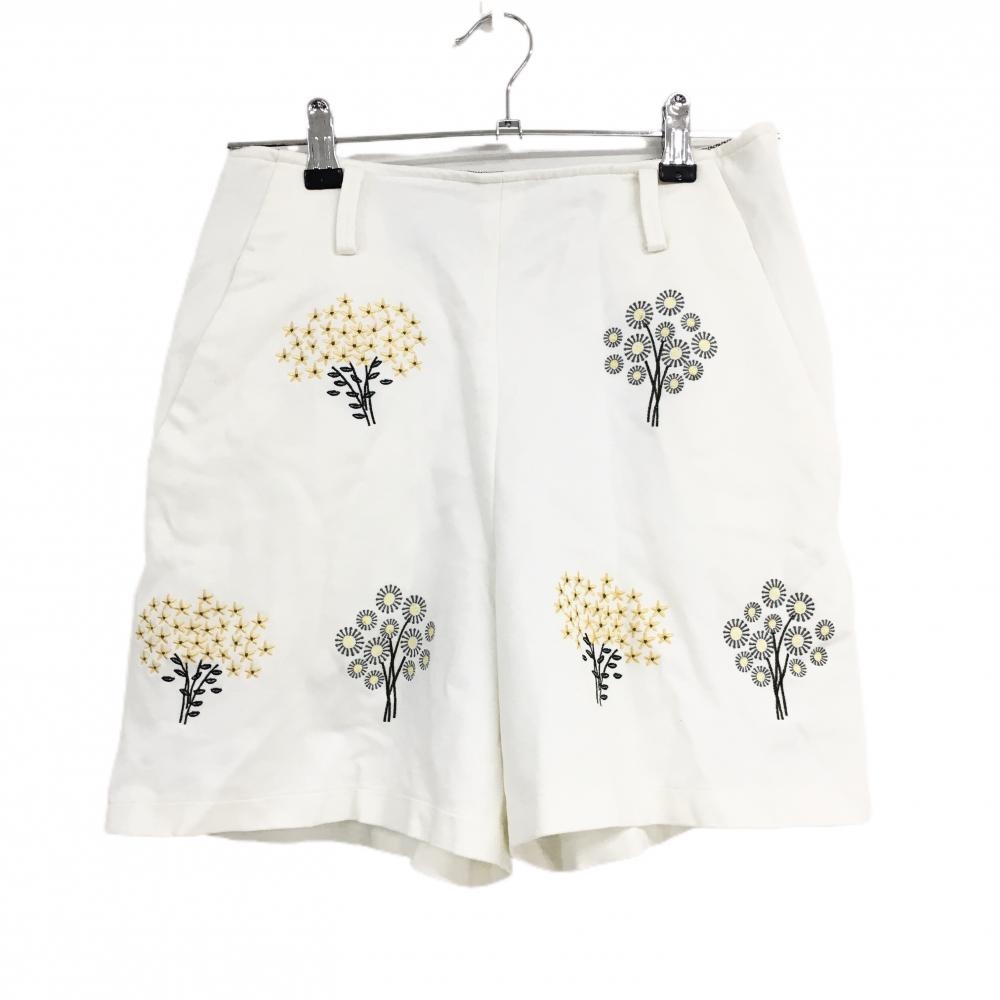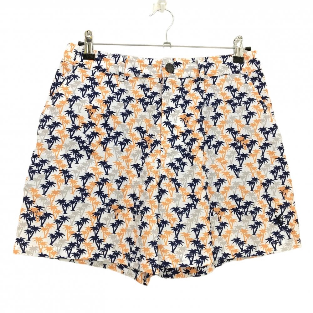 【美品】アドミラル キュロットスカート 白×イエロー ヤシの木柄 ロゴ刺しゅう レディース L ゴルフウェア Admiral