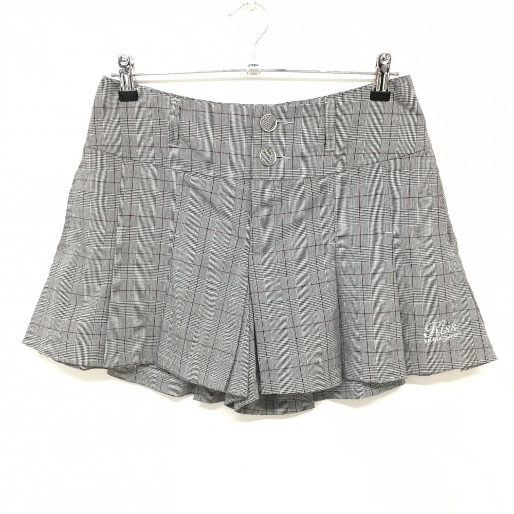 【美品】キスオンザグリーン キュロットスカート グレー×白 ストライプ 起毛素材 秋冬 レディース 2(M) ゴルフウェア kiss on the green