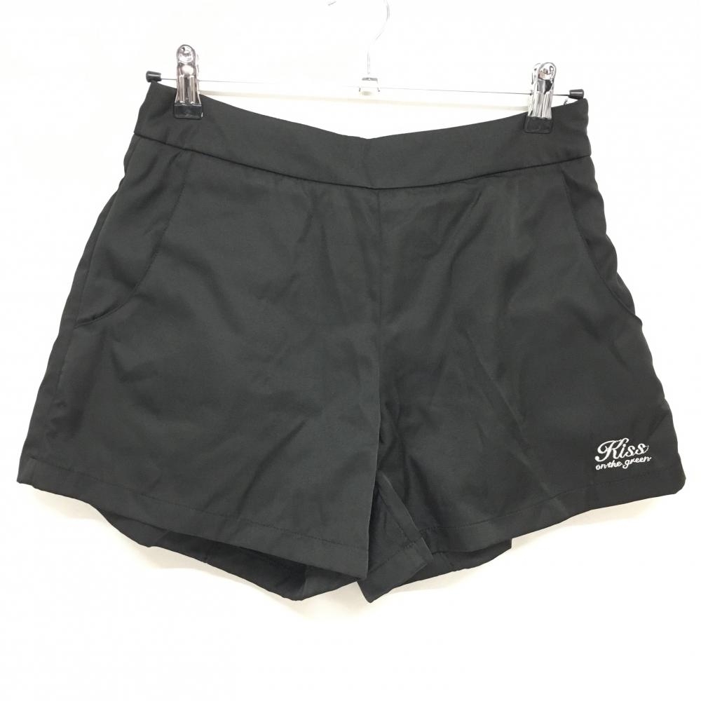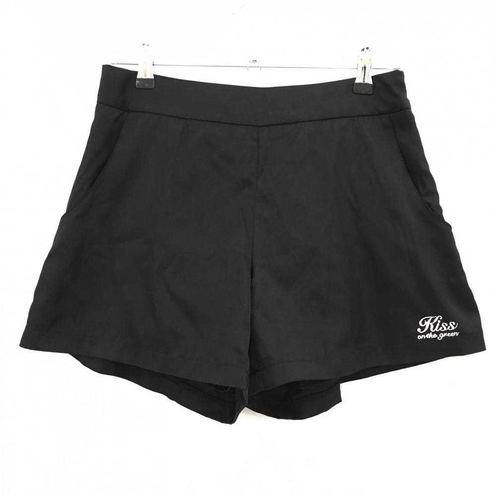 【超美品】キスオンザグリーン キュロットスカート 黒 後ろビッグリボン 裏地付 レディース 3(L) ゴルフウェア kiss on the green