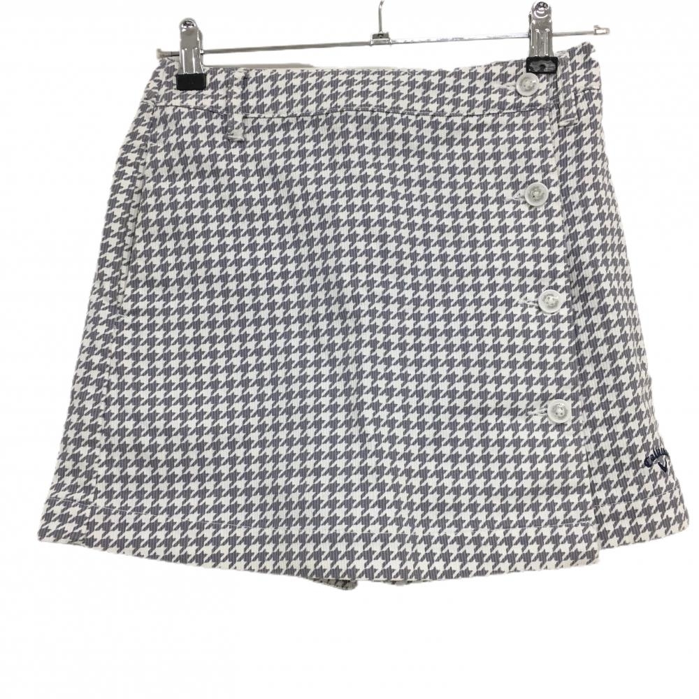 【超美品】キャロウェイ キュロットスカート ブルー×白 格子柄 ロゴ刺しゅう 裏地付き レディース LL ゴルフウェア Callaway