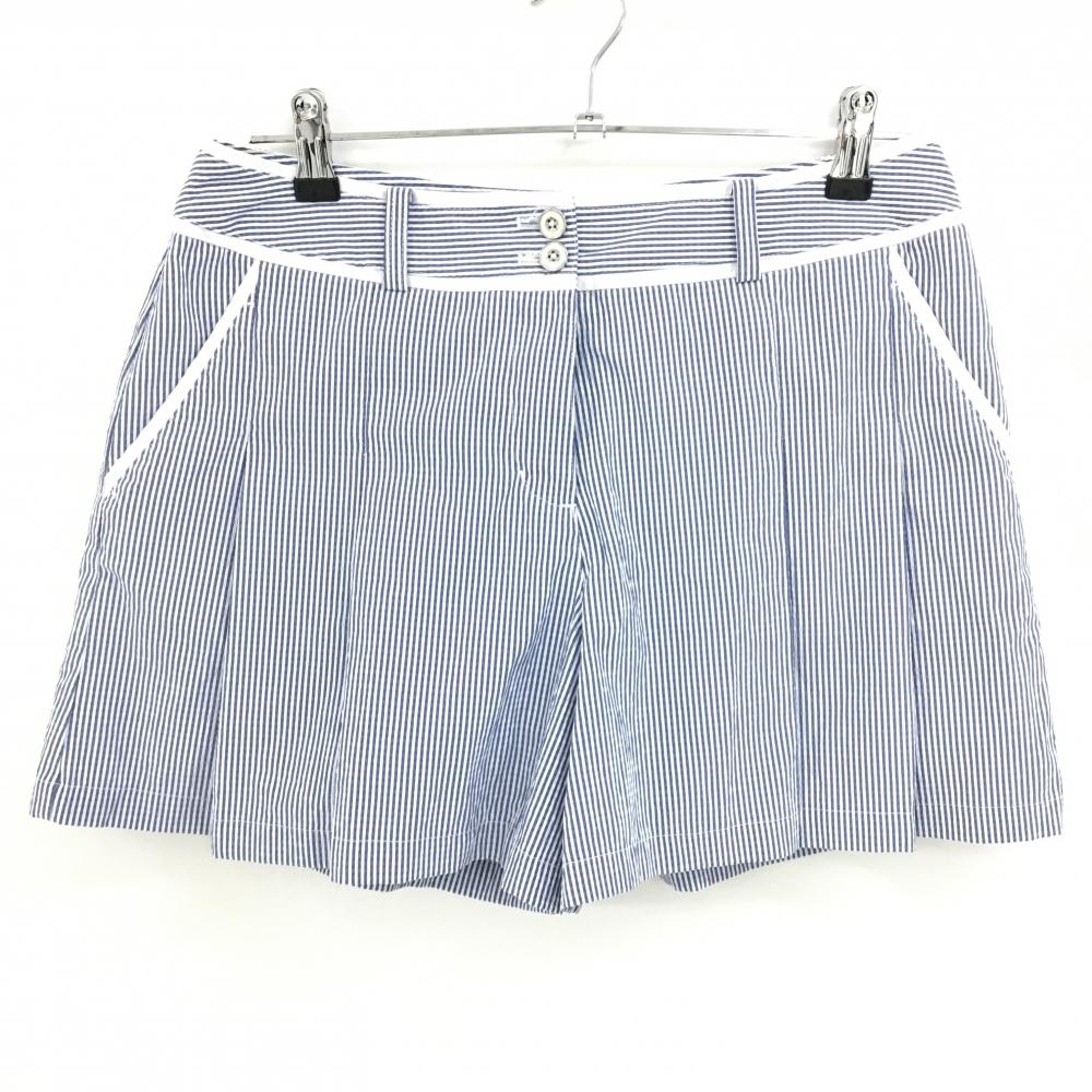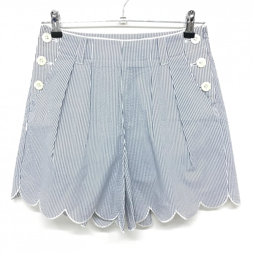 【超美品】ビームスゴルフ キュロットスカート 白×ネイビー ストライプ柄 サッカー生地 レディース S ゴルフウェア BEAMS GOLF