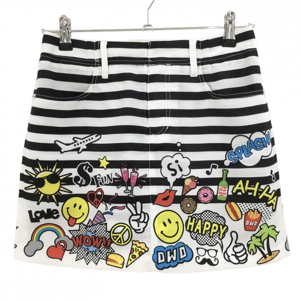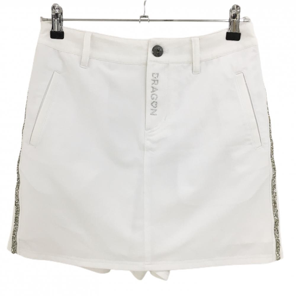 【美品】ダンスウィズドラゴン キュロットスカート 白×黒 ロゴラインストーン レディース 2(M) ゴルフウェア Dance With Dragon