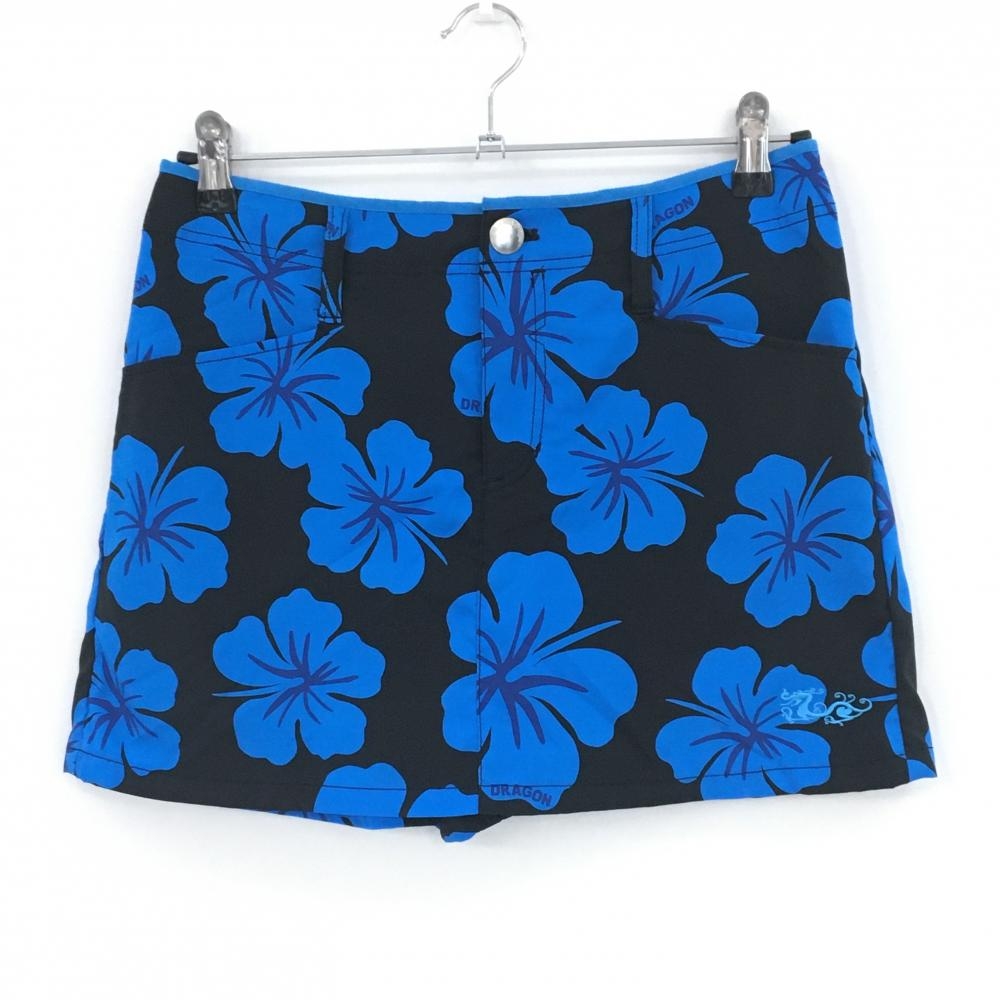 【美品】ダンスウィズドラゴン キュロットスカート ネイビー×イエロー 花柄 レディース 1(S) ゴルフウェア Dance With Dragon